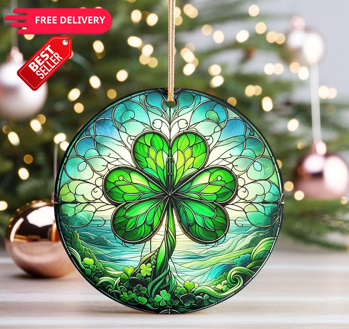 Rigufu Irish Celtic Shamrock Ceramic Ornament for St Patrick's Day, Green