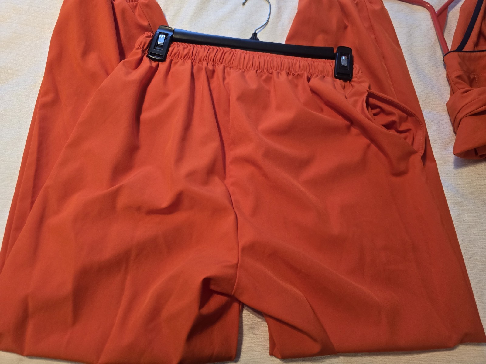 womens sz M Orange Scrubs Set Long Sleeve Top Jogger Style Pants Stretch Euc