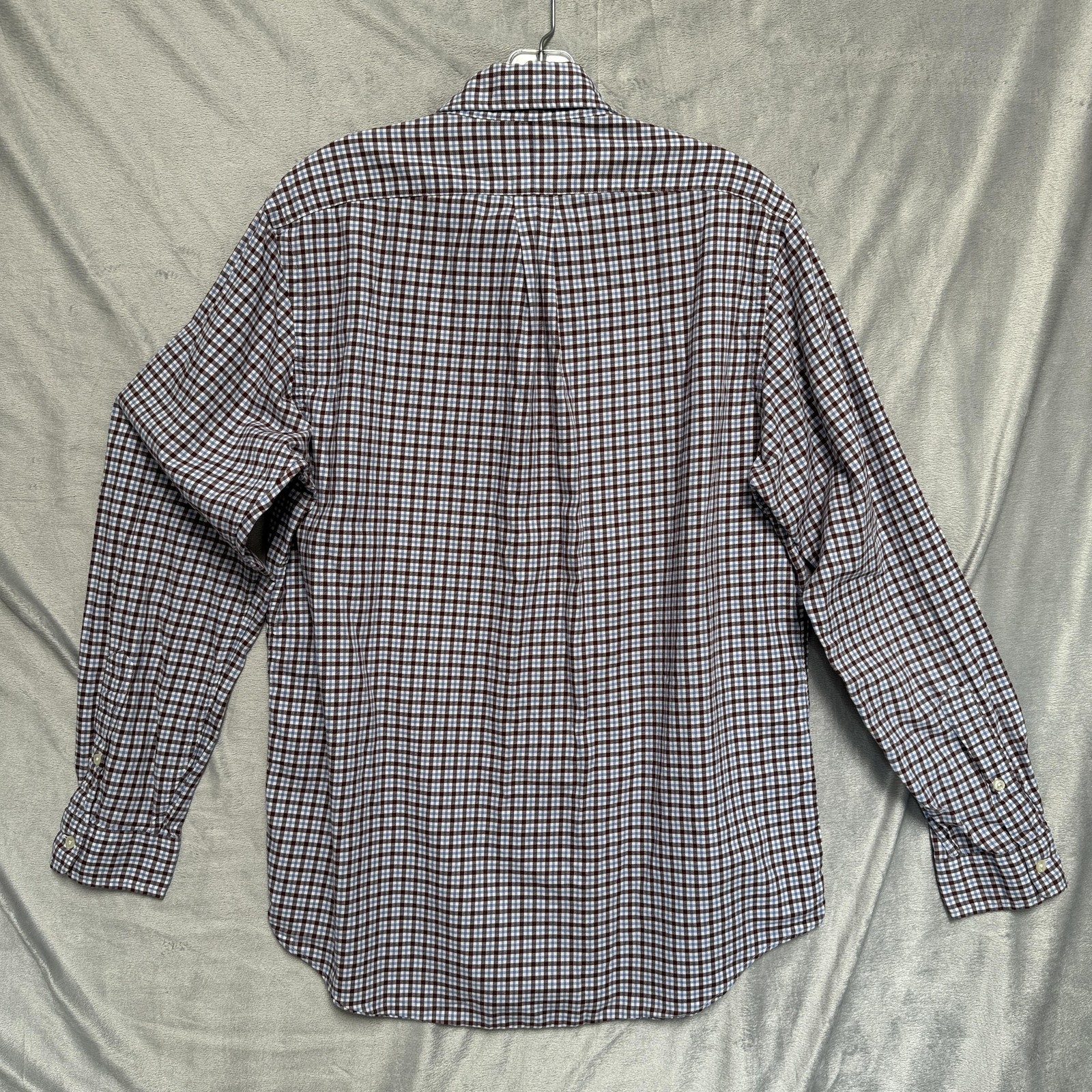 Polo Ralph Lauren Shirt Mens Medium Brown Blue Plaid Button Down Classic Fit