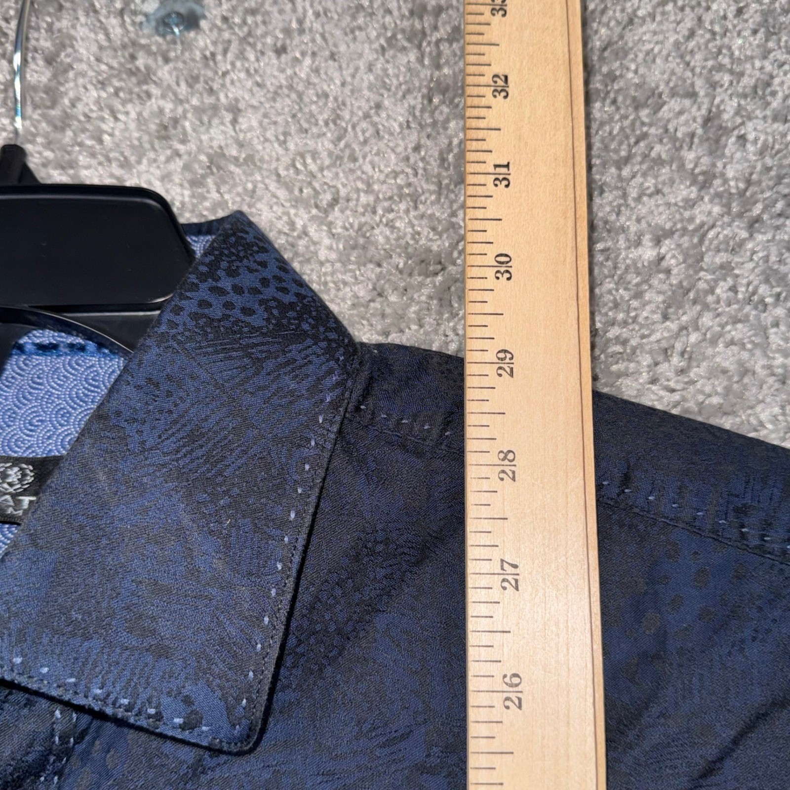 как выглядит BUGATCHI UOMO Mens Navy Blue Textured Pattern Button Up Shirt Flip Cuff Sz Large фото