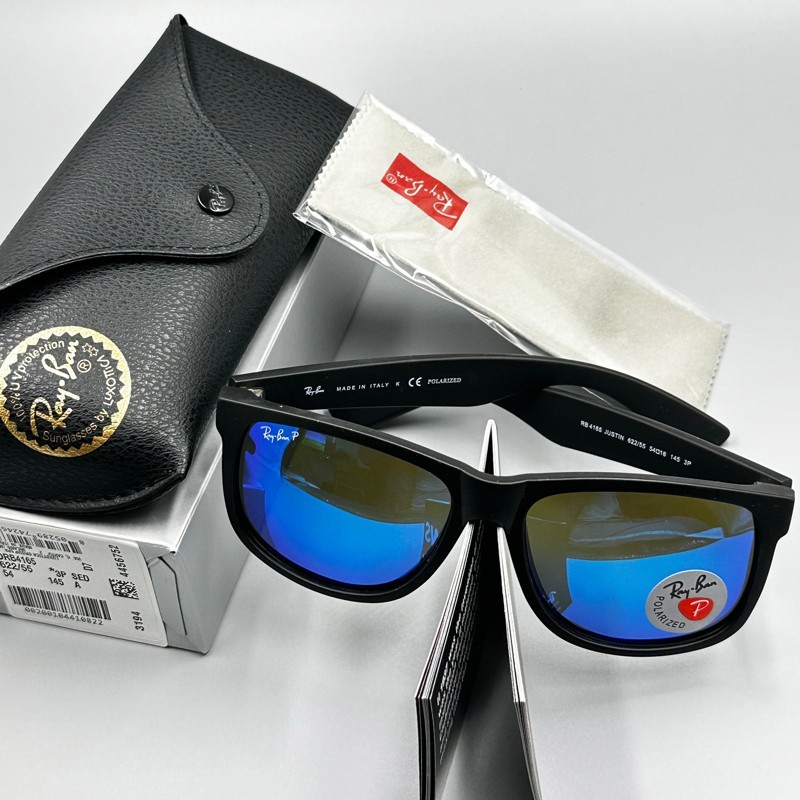 54mm Ray-Ban RB4165 622/55 Justin Black Frame Blue Polarized Lenses Sunglasses