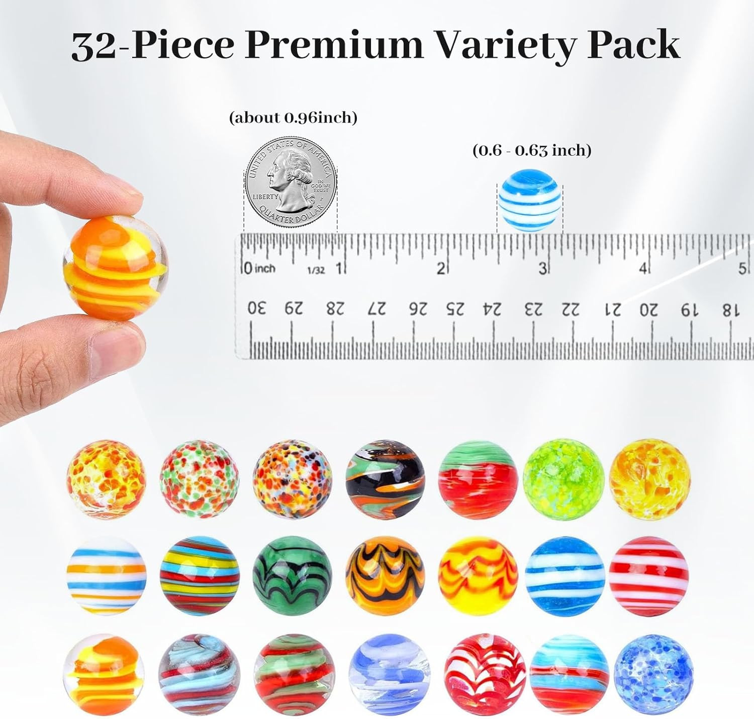 32PCS Glass Marbles Bulk, 16mm/0.6inch Handmade Colorful Assorted Marbles for Va