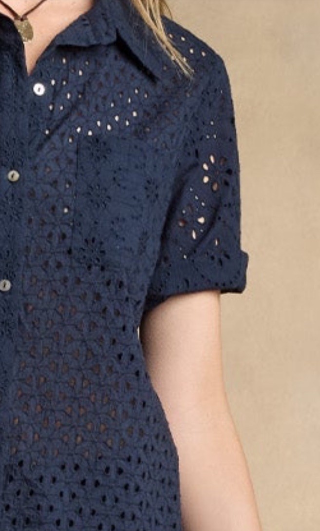как выглядит NEW Sundance Catalog Women Short Sleev TABITHA NAVY Eyelet Shirt Top Blouse PXS фото