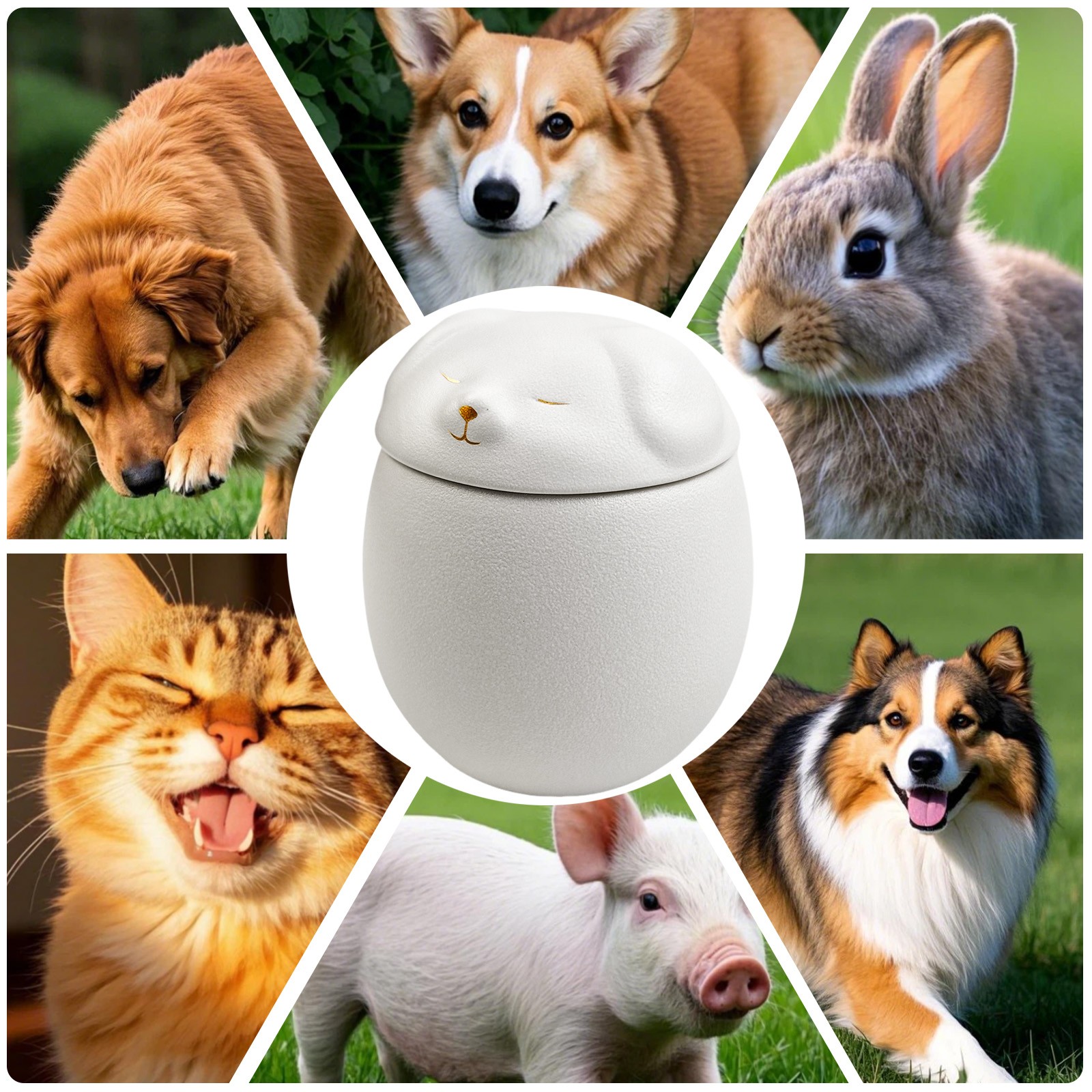 как выглядит Smiley Dog Shaped Pet Urn 4.9x4.3 inch for Small Dog And Cat Ashes White фото
