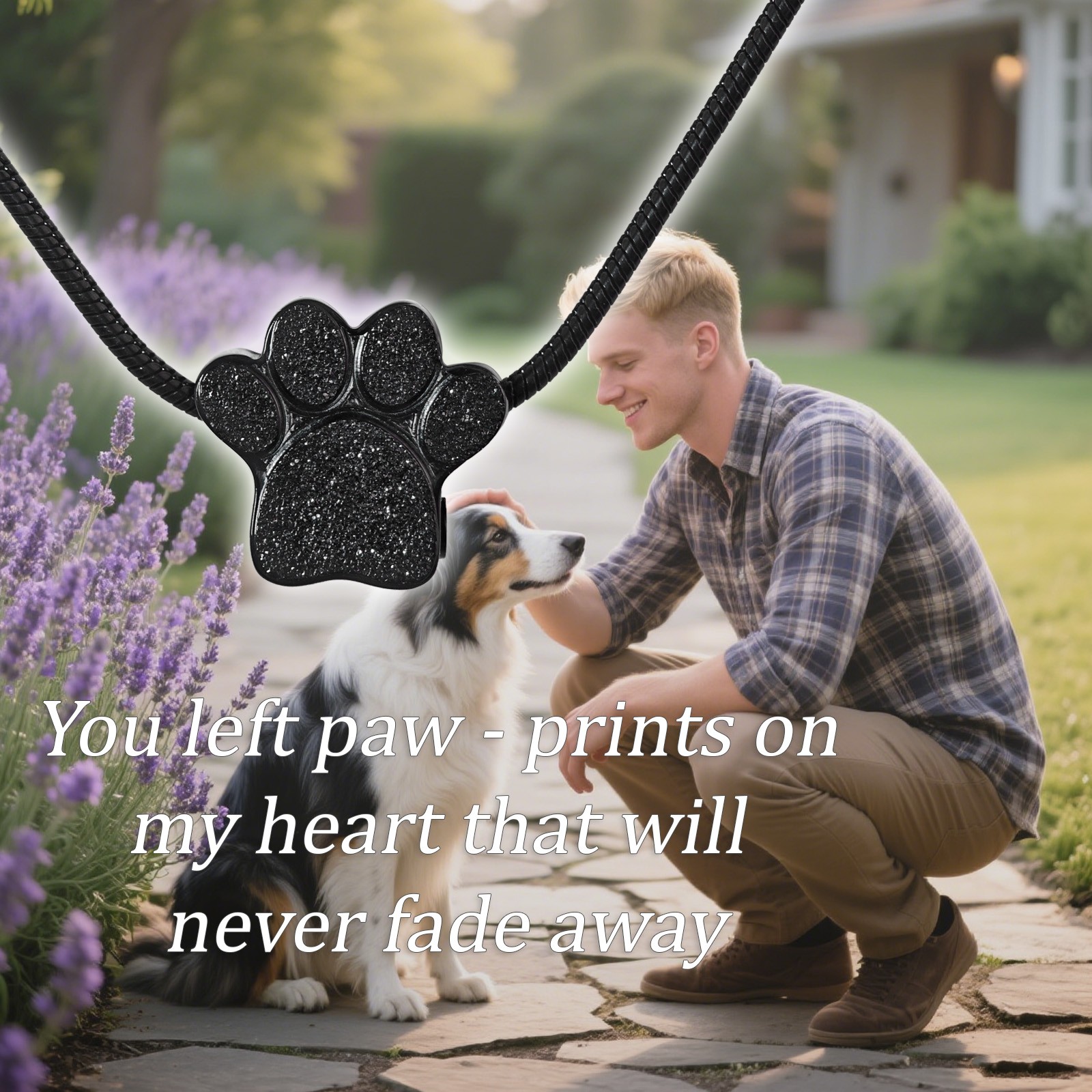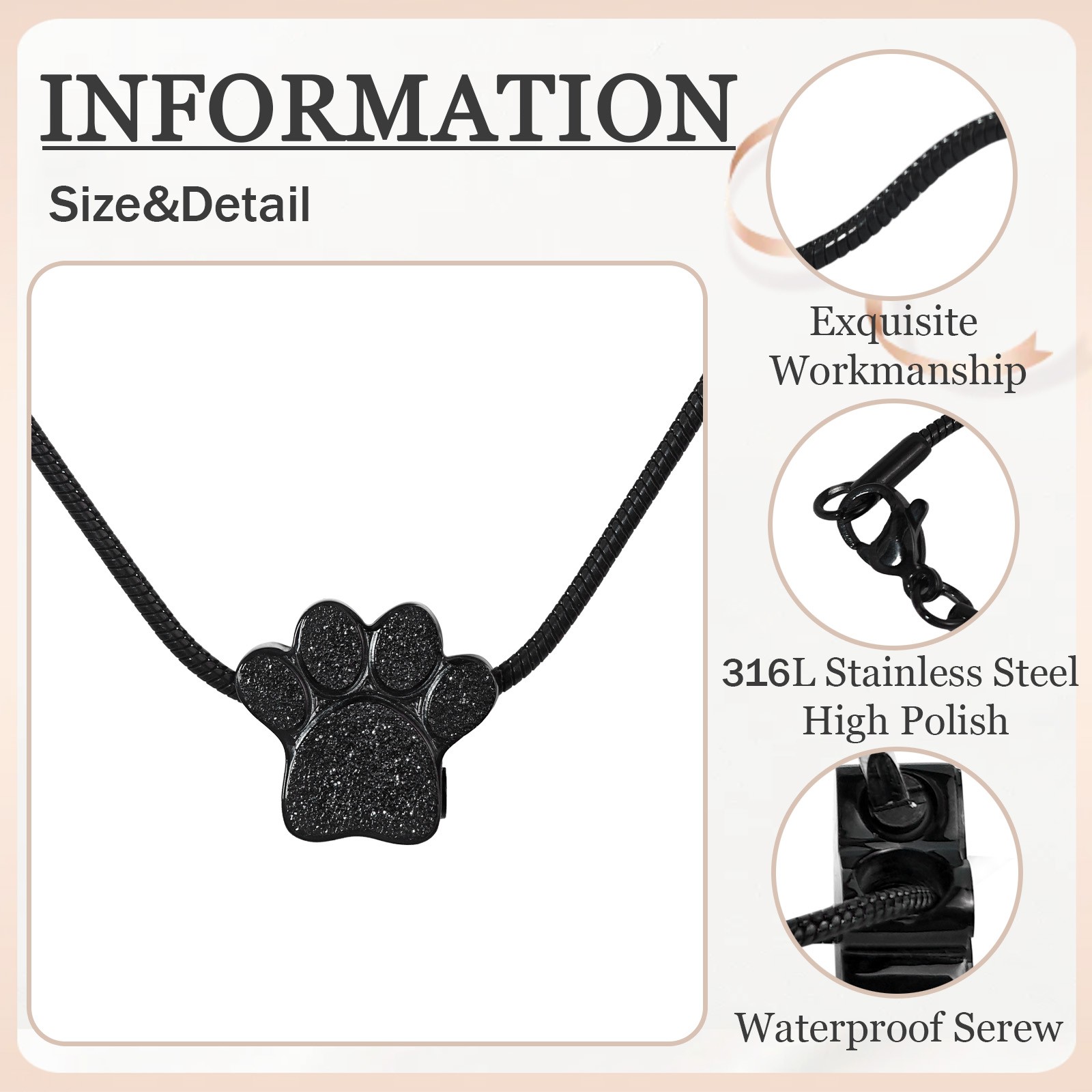 Paw Print Heart Pet Ashes Memorial Necklace For Dog Cat Ashes A-Black