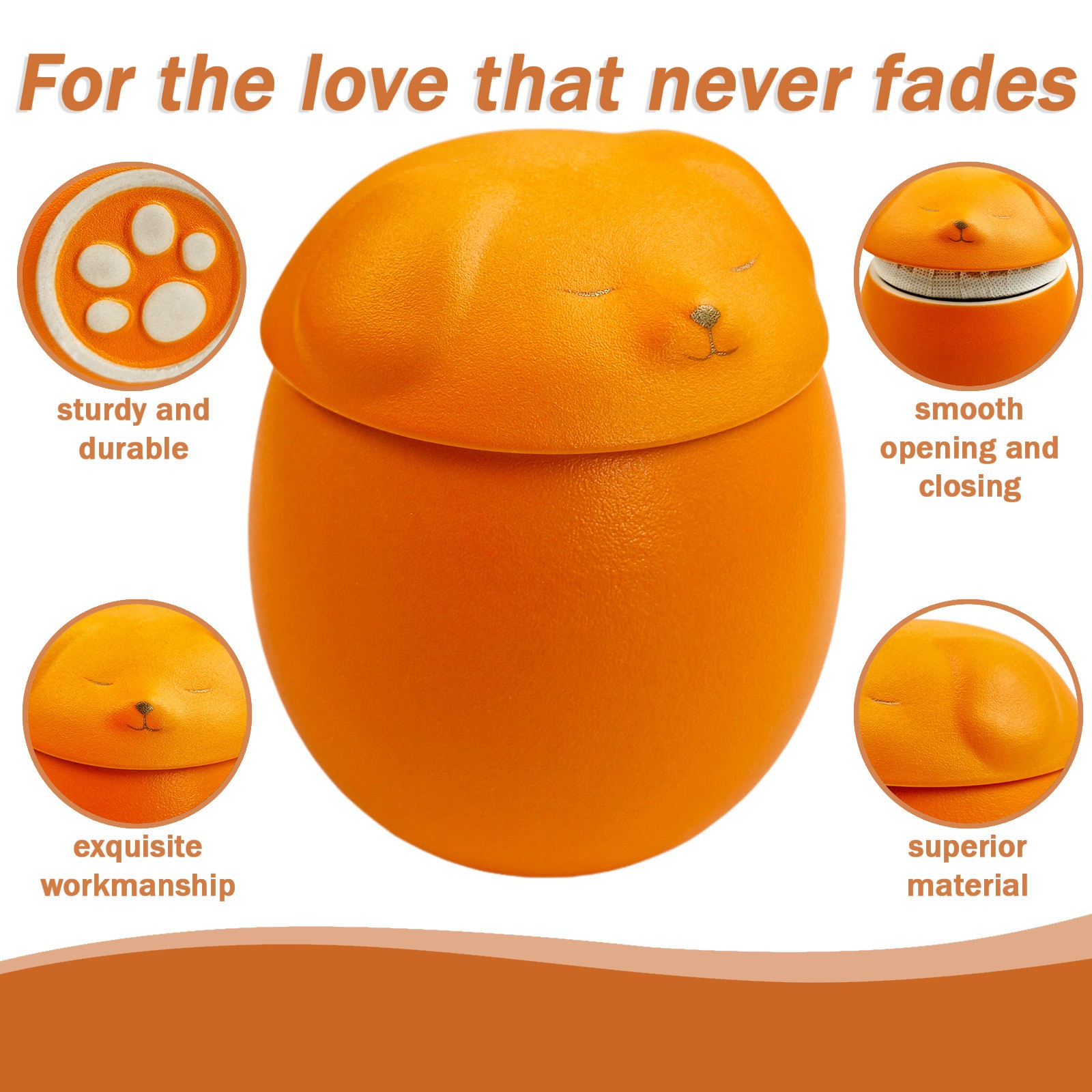 Smiley Dog Shaped Pet Urn 4.9x4.3 inches For Small Dog And Cat Ashes Orange, L