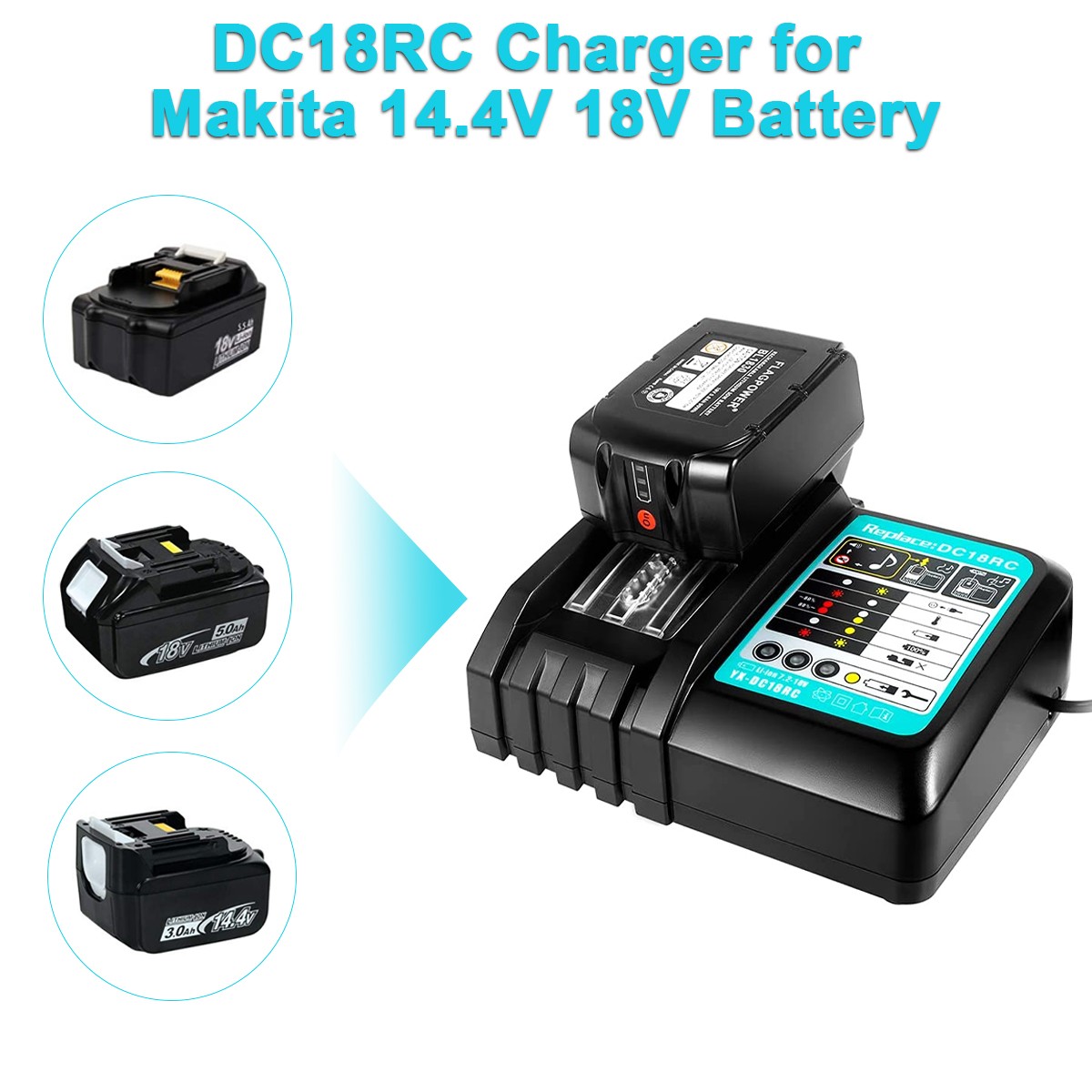 как выглядит For Makita 18V LXT Lithium-Ion BL1830 BL1850 Battery Charger DC18RC For Makita фото