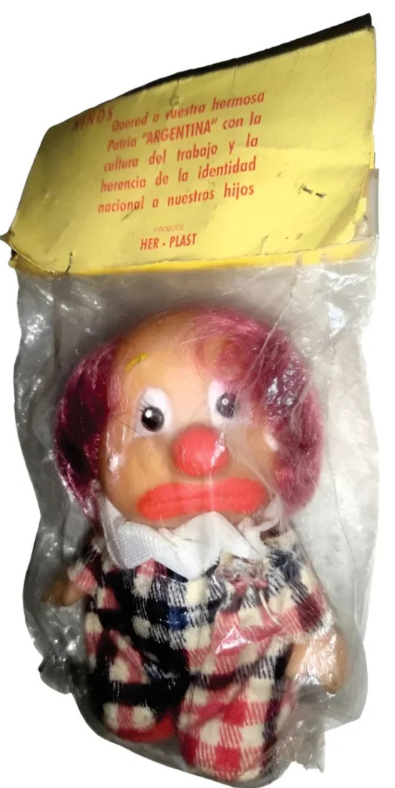 Vintage 1970s Rubber Clown Doll Her-Plast Argentina Sealed NOS Rare Oddity Toy
