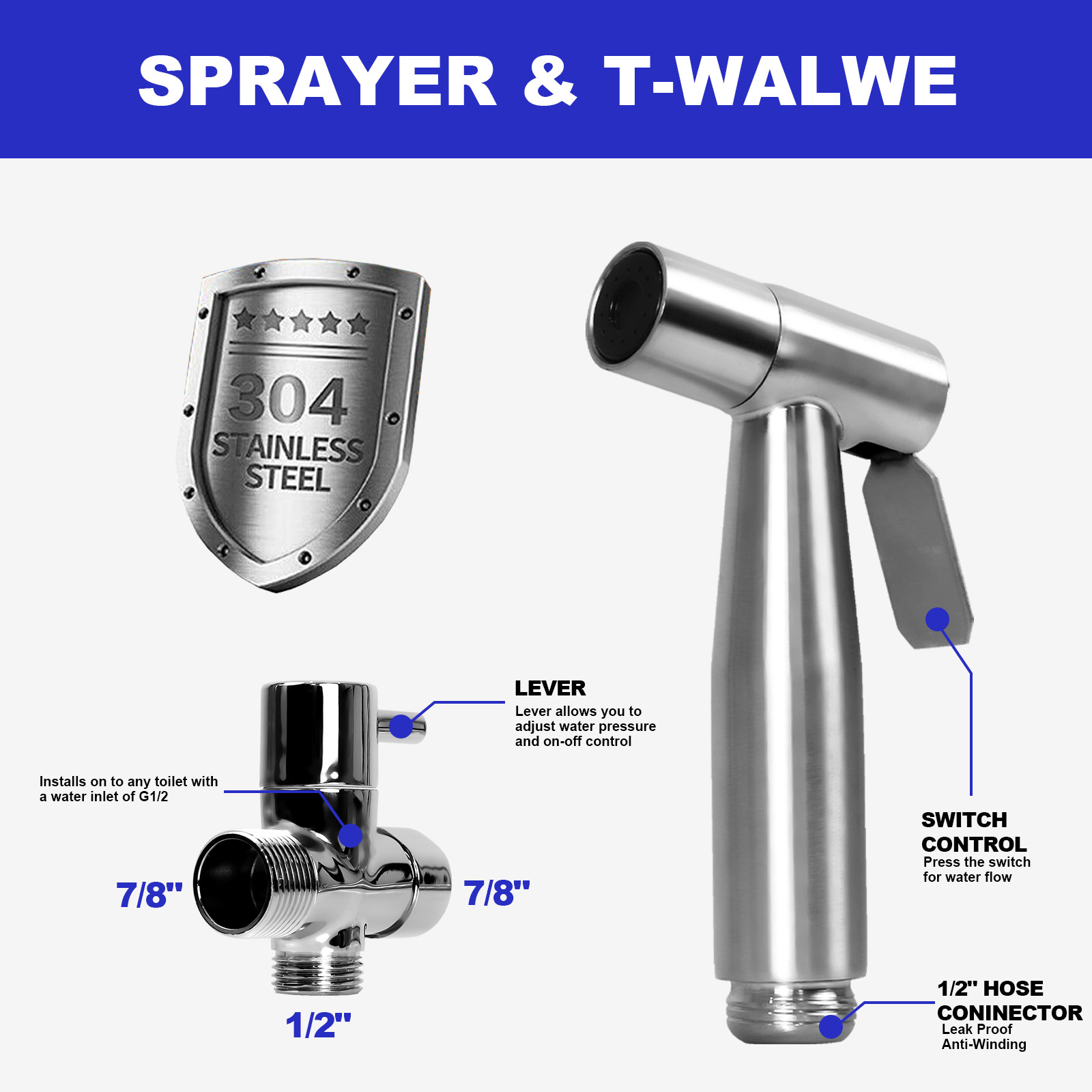 US Toilet Shattaf Adapter Hose Bidet Spray Stainless Steel Handheld Shower Head