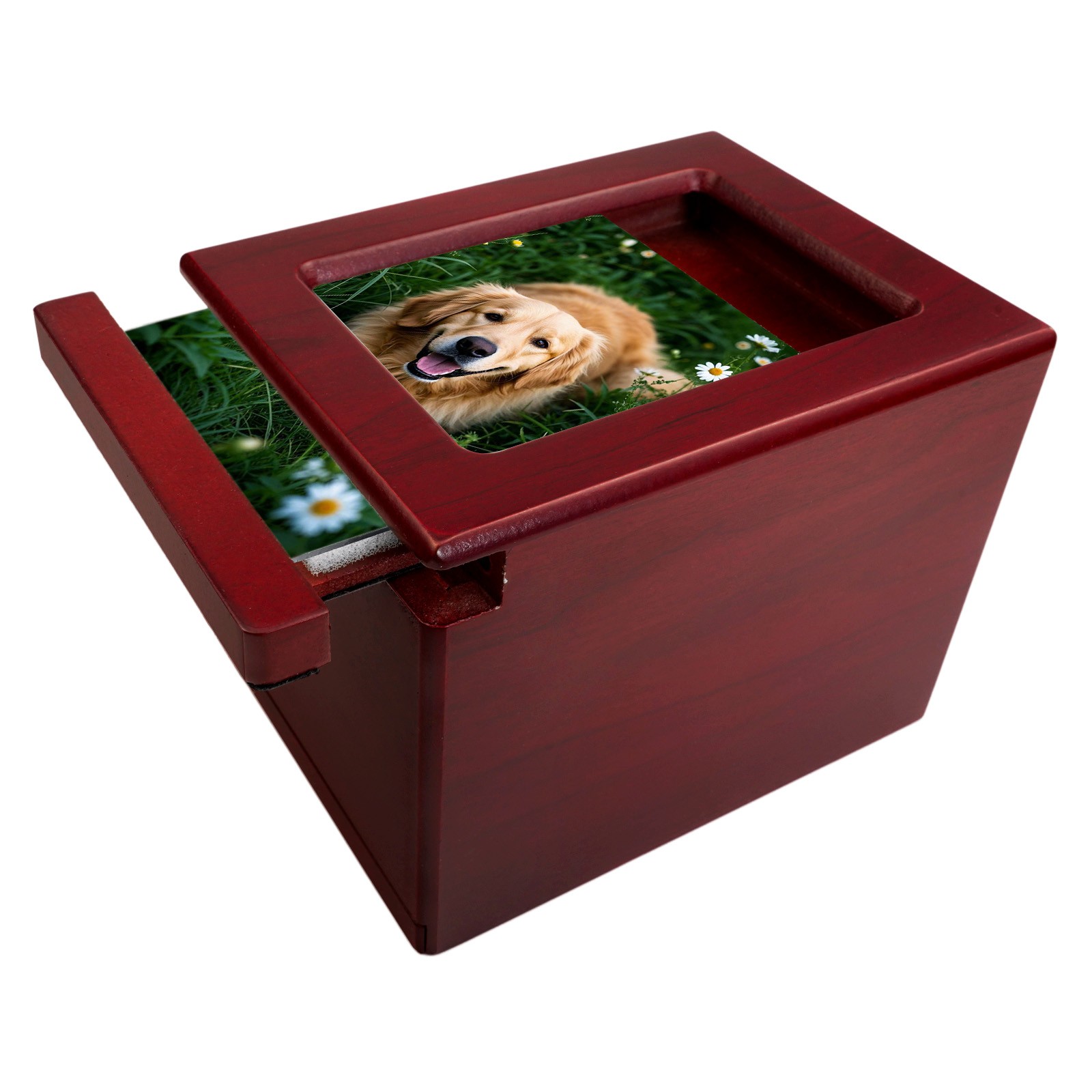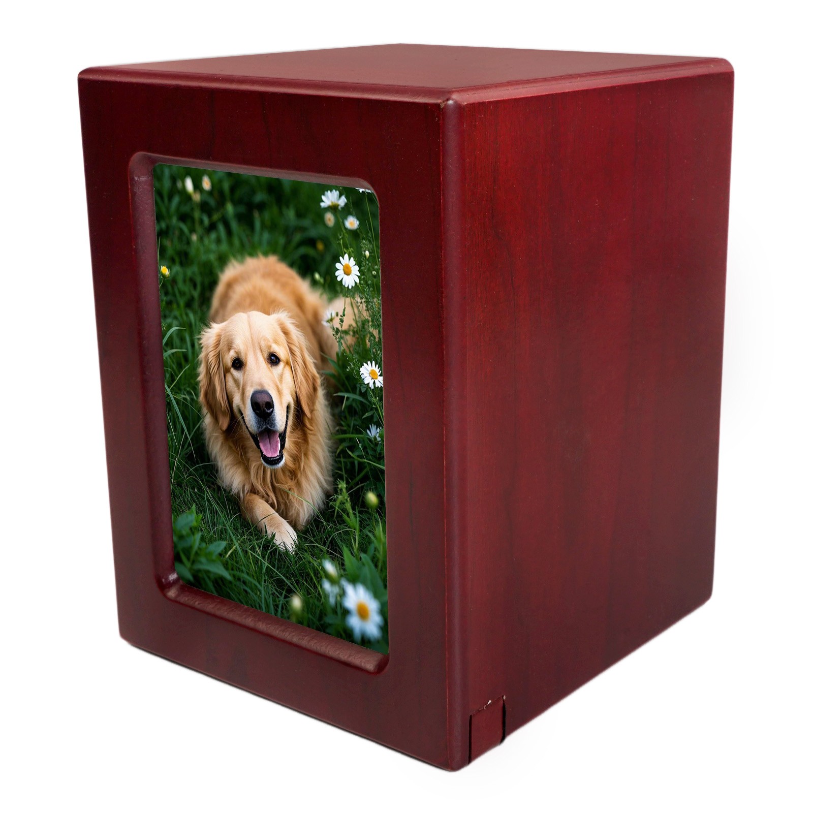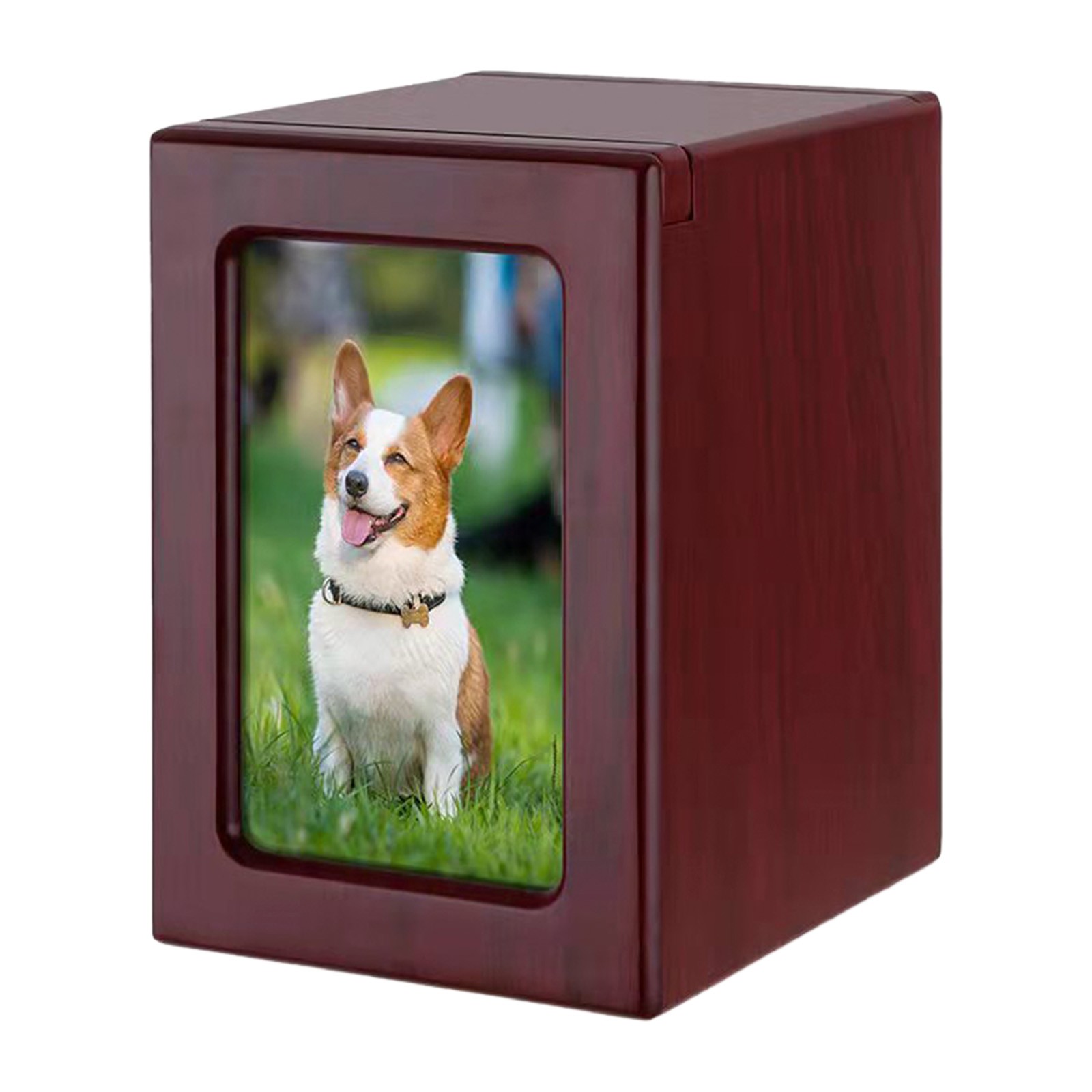 Wooden Funeral Cremation Urn with Photo Frame For Dogs And Cats Red,S 0-25lbs