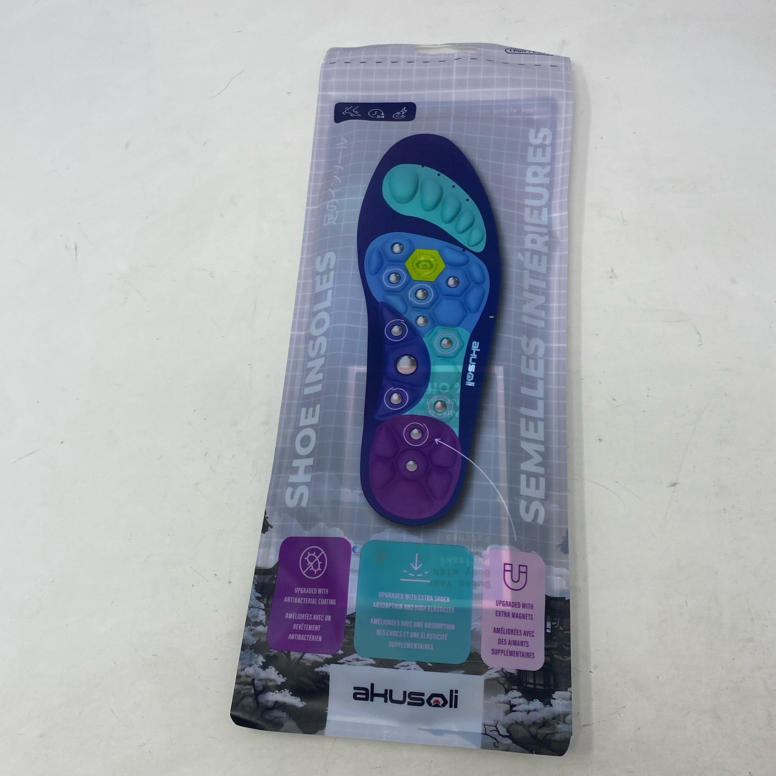 Akusoli Magnetic Insoles S/M Blue/Teal Women 5-10 Men 5.5-8