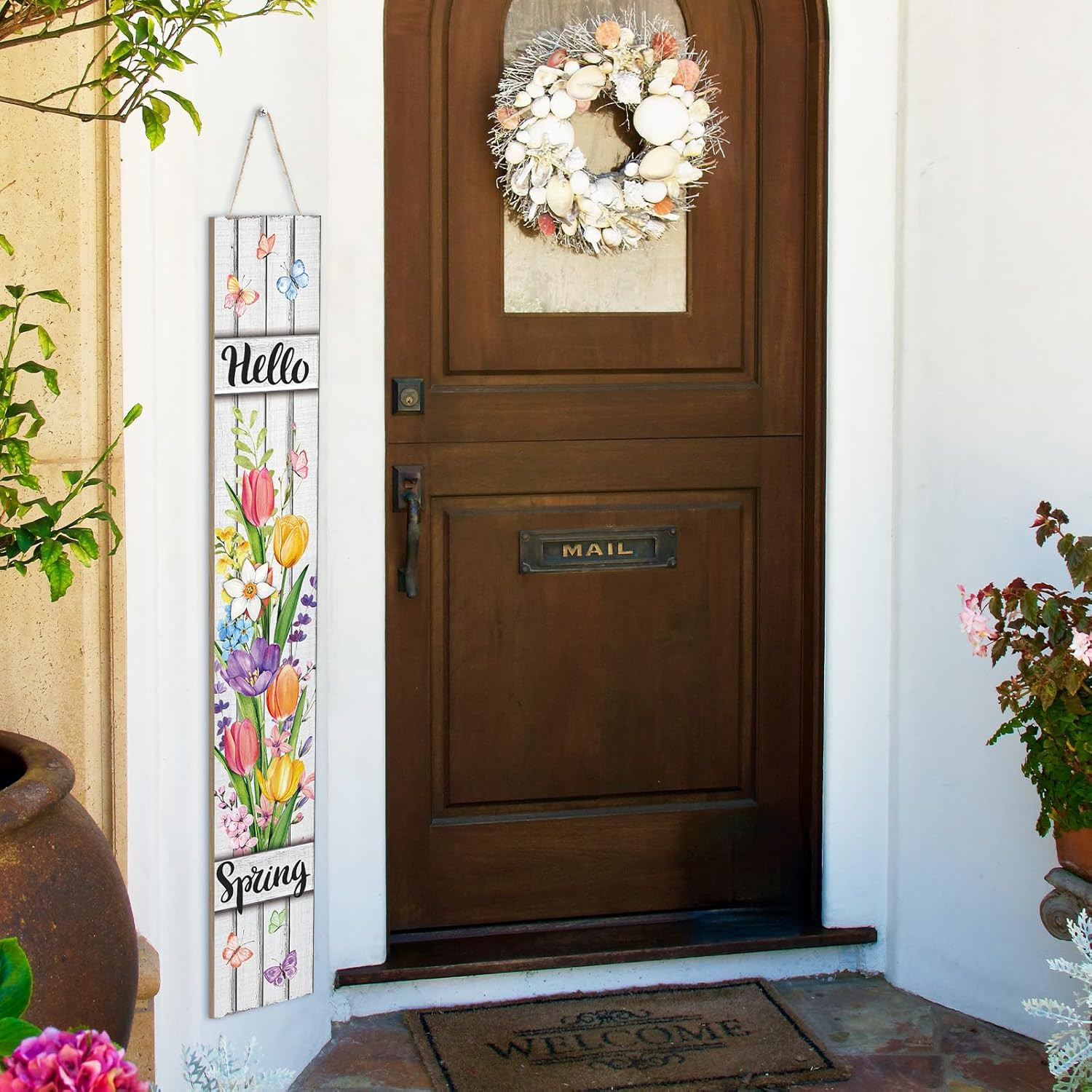 47 Large Spring Porch Sign Tulip Welcome Sign Wooden Tall Spring Porch Decor Le