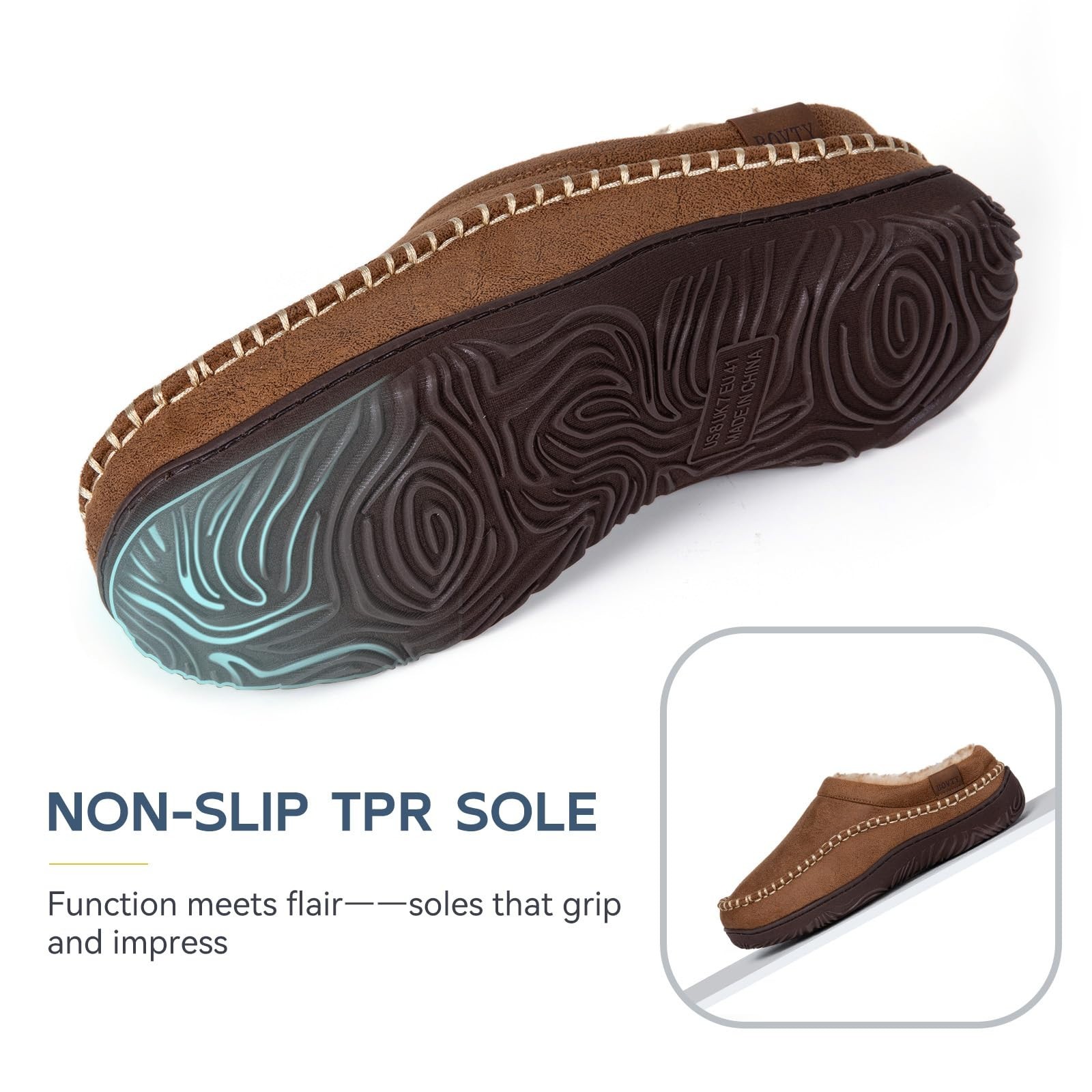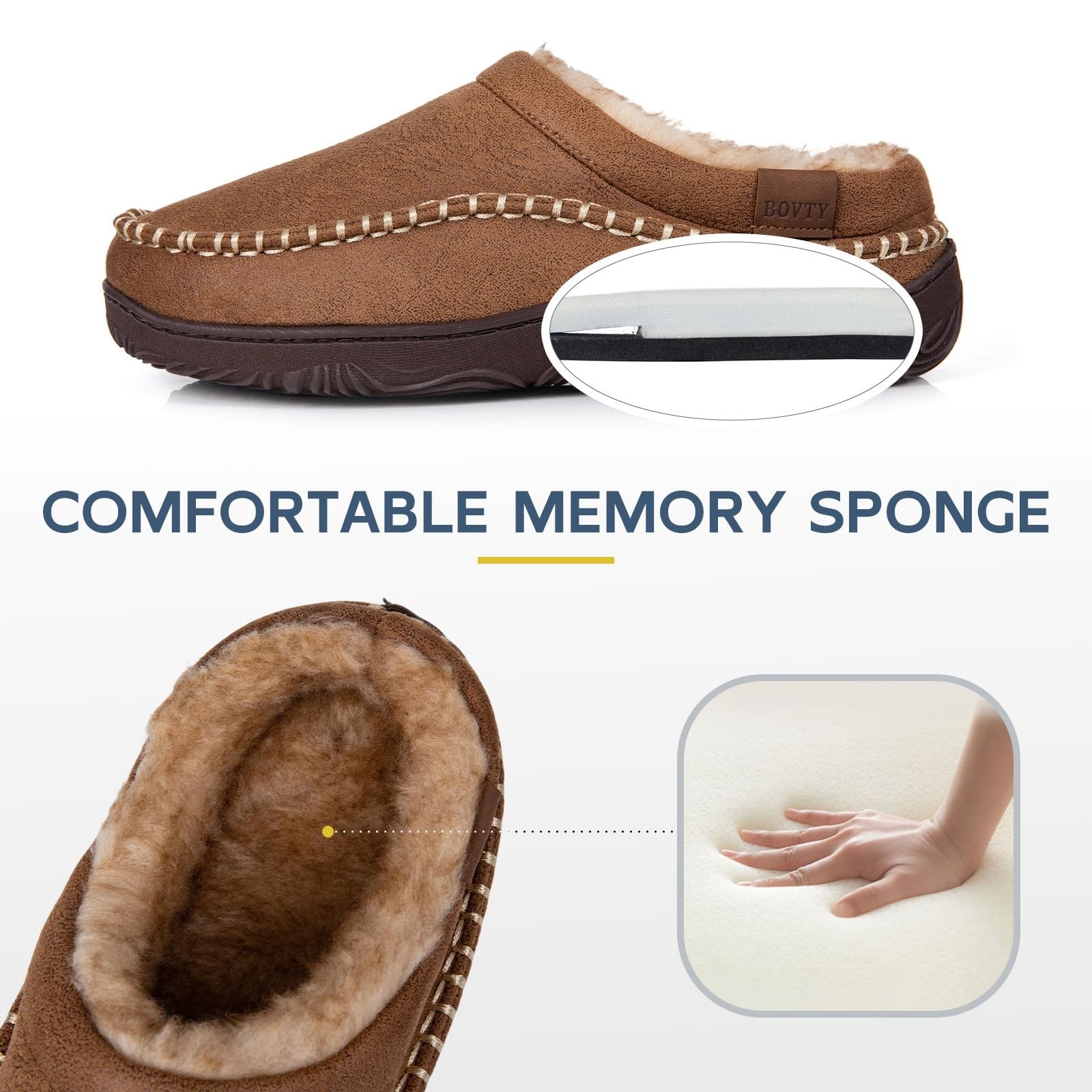 как выглядит Mens Memory Foam Moccasin Slippers Warm Plush Indoor Outdoor House Shoes Gift фото