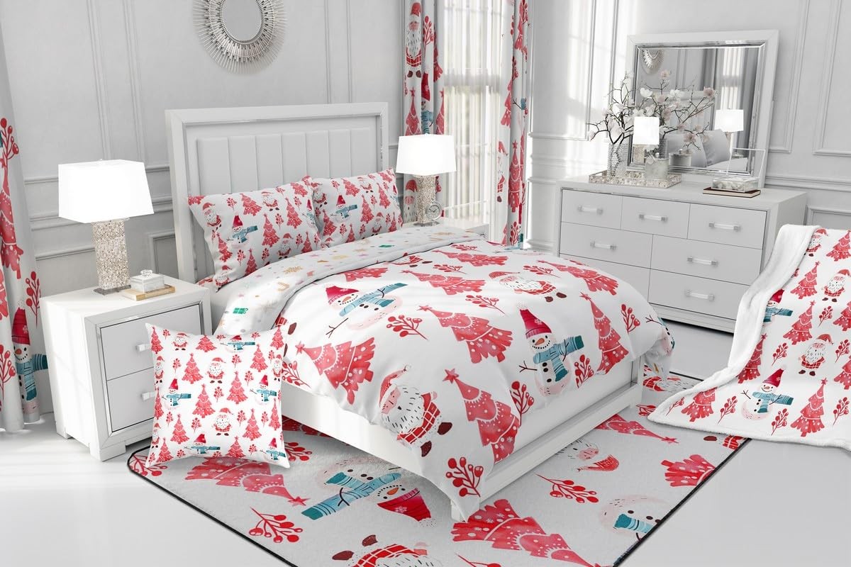 Merry Christmas Comforter Set All Season Xmas Tree Snowman Bedding Set with 2...