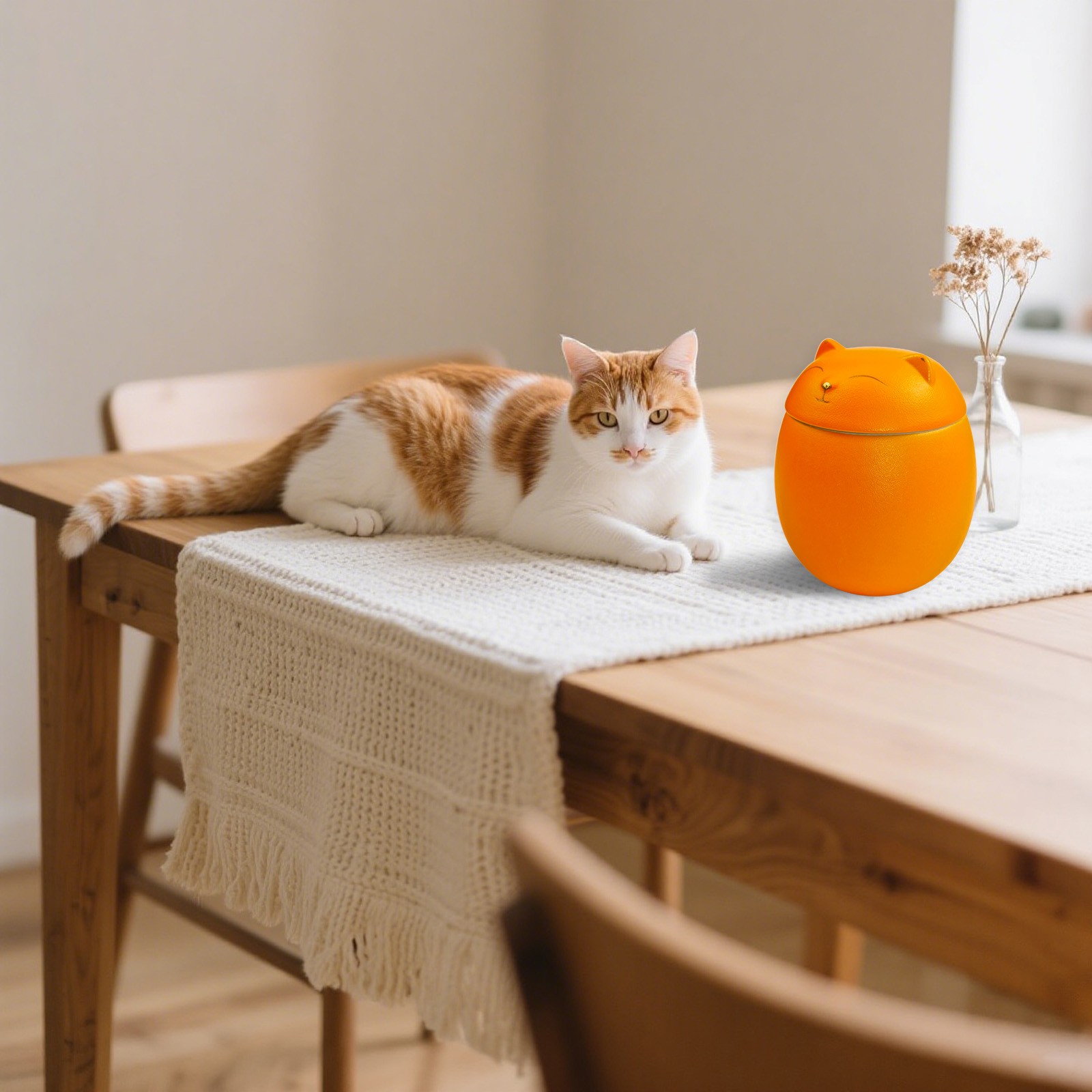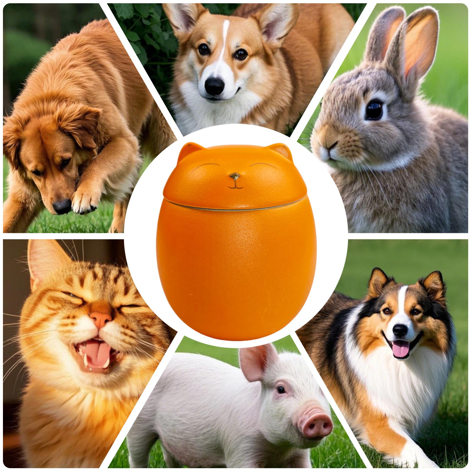 Smiley Cat Shaped Pet Urn 4.9 4.3 inches For Small Dog And Cat Ashes Orange, L