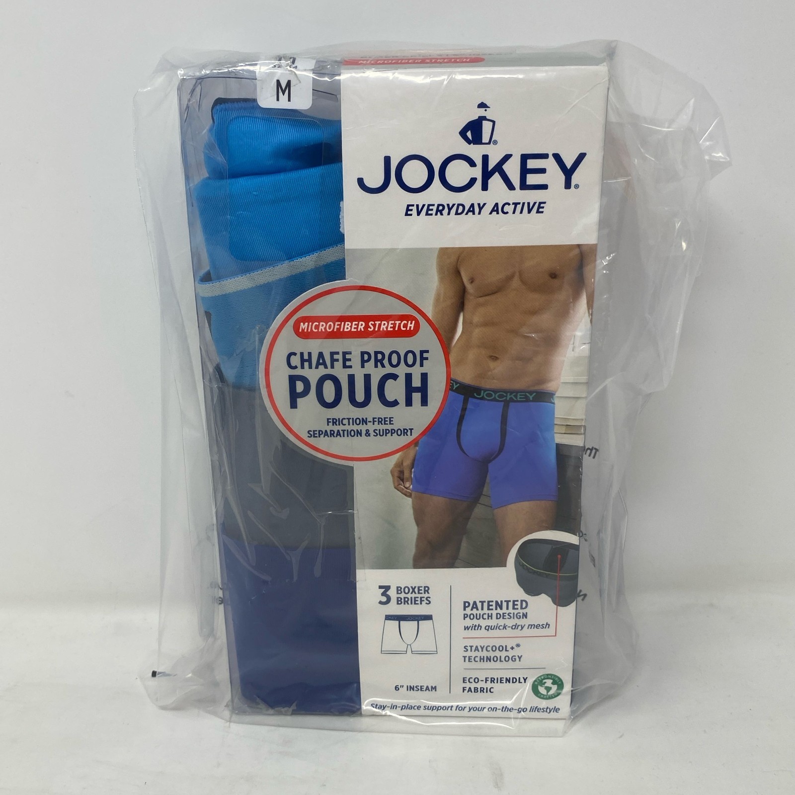 Jockey Men Microfiber Chafe-Proof 6 Boxer Briefs 3pk M Aqua/Grey/Blue