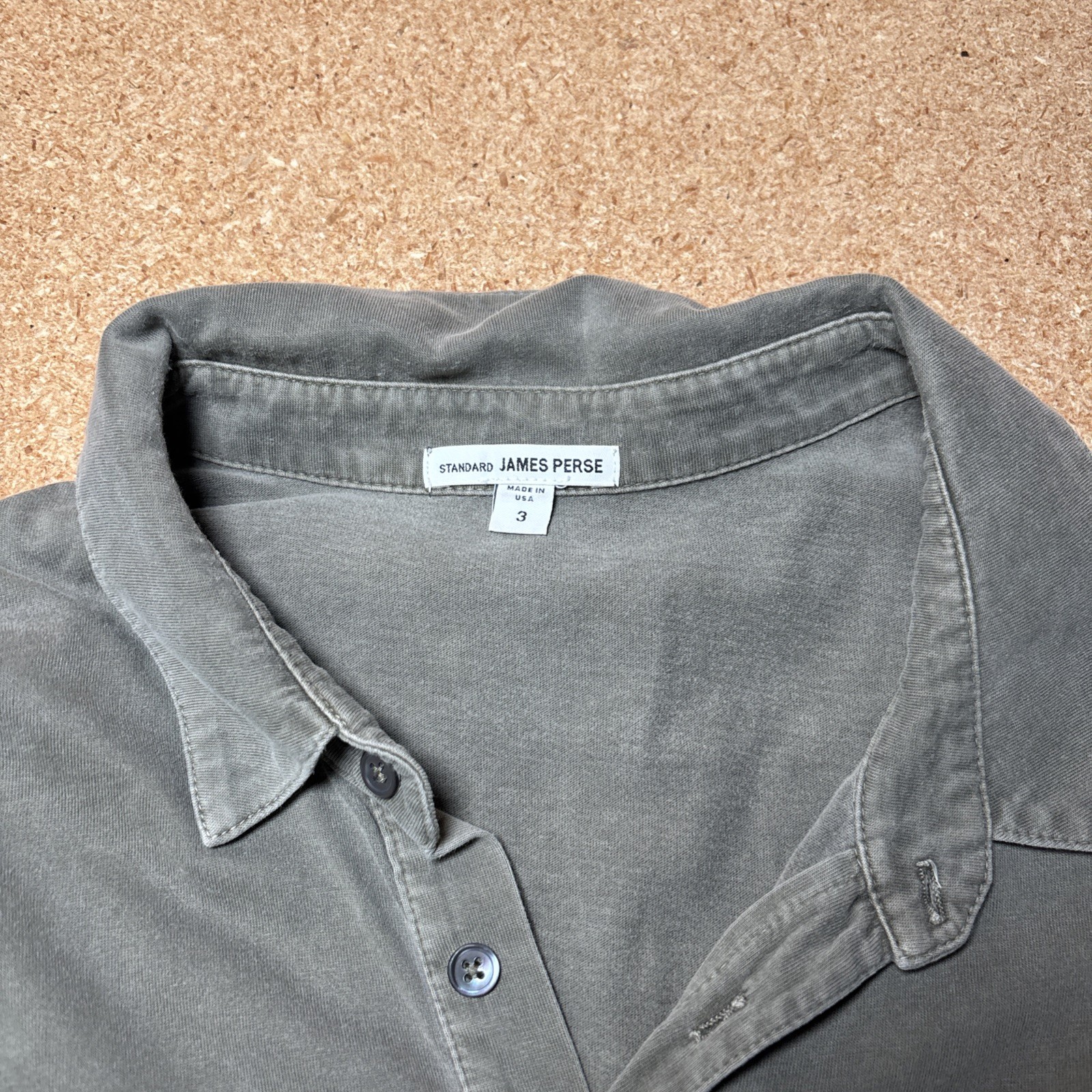 как выглядит Standard James Perse Shirt Mens 3/L Gray Garment Dyed Short Sleeve Polo Casual фото