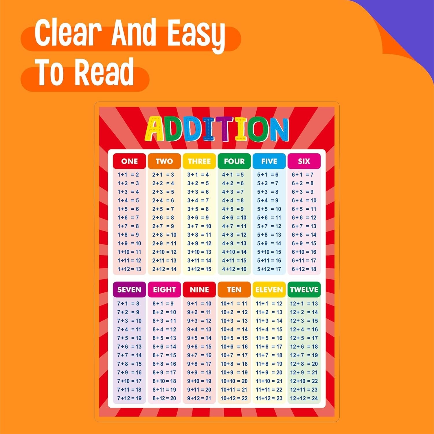 Addition and Subtraction Poster, Fully Laminated Math Table Charts, Educational