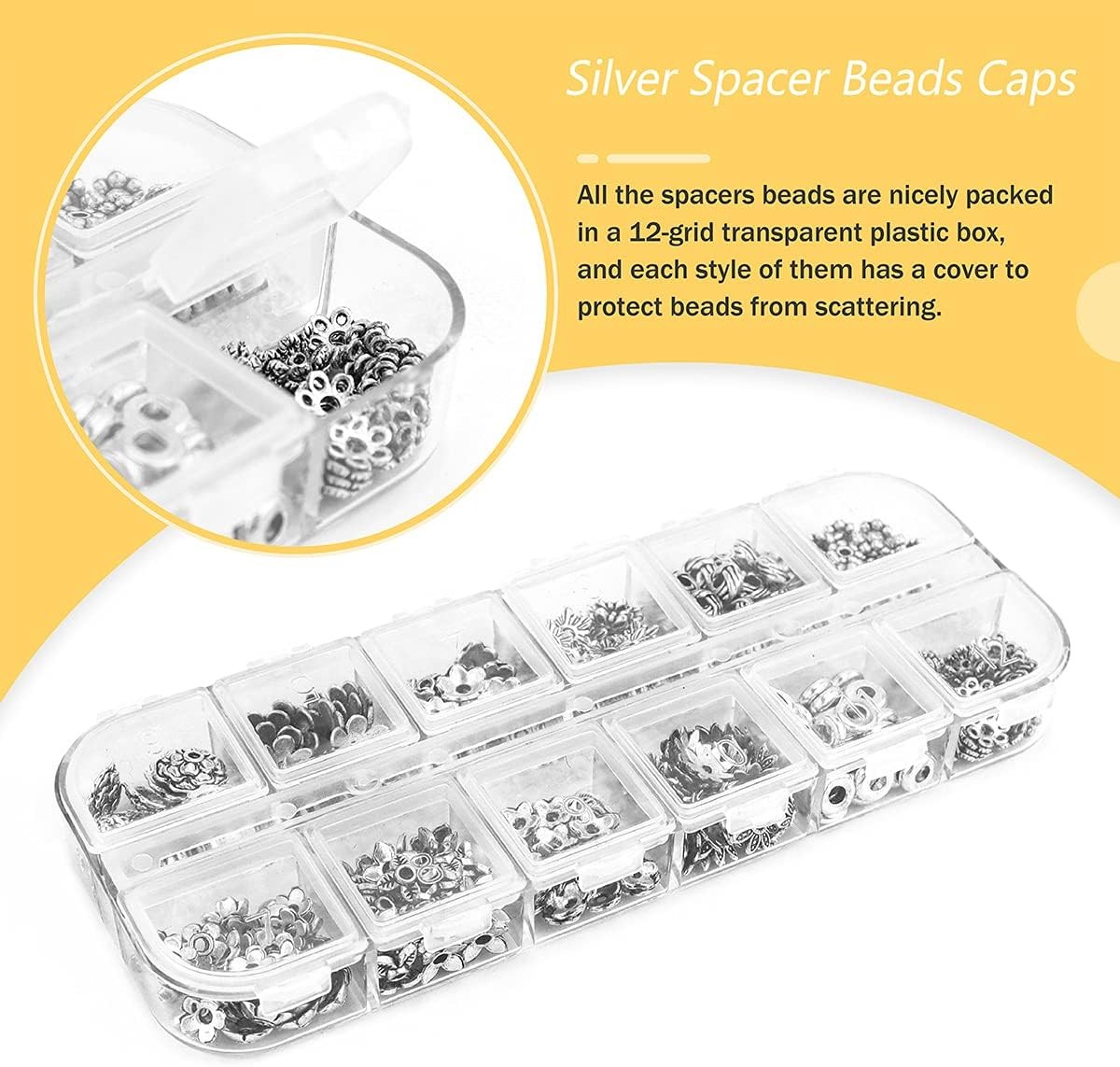 как выглядит 360 Pcs Silver Spacer Beads for Jewelry Making, Mixed Bulk Random Styles Metal фото