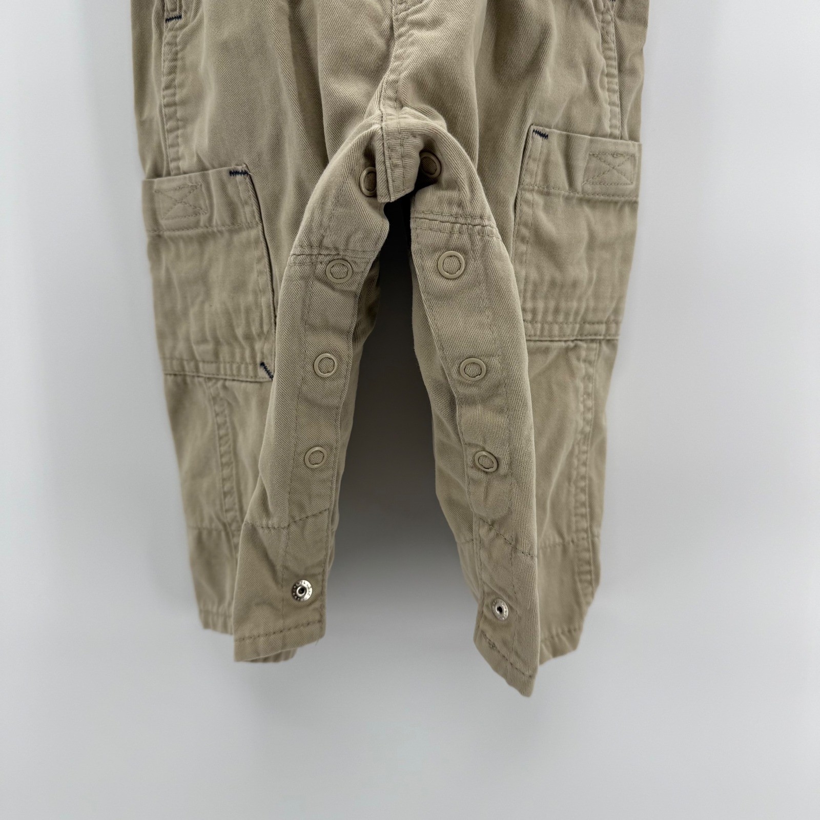 OshKosh BGosh Baby Toddler Boy's Khaki Cotton Overalls Vestbak Sz 12 Months Y2K