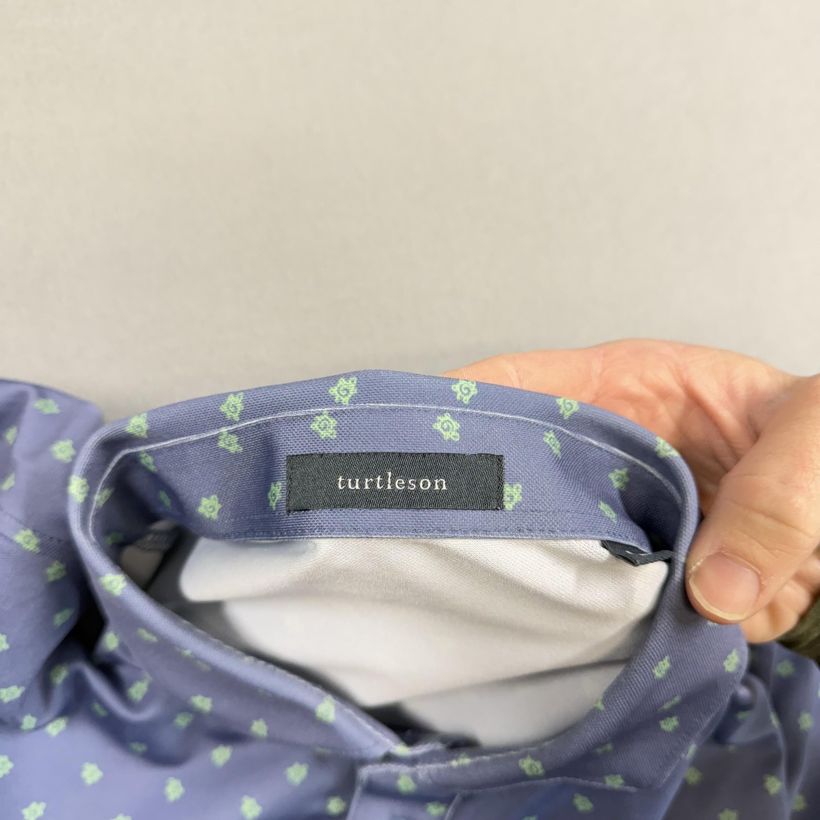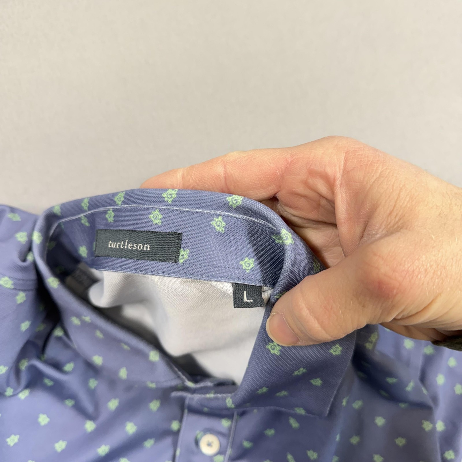 Turtleson Polo Shirt Mens Large Blue Turtle Print Golf Performance Short Sleeve