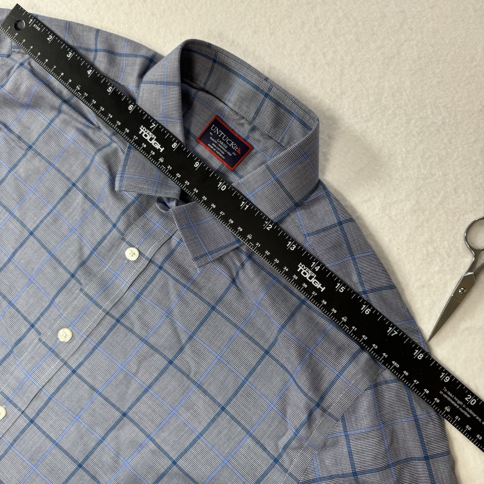 как выглядит UNTUCKit Men s L Ortman Wrinkle Free Slim Fit Blue Plaid Shirt фото