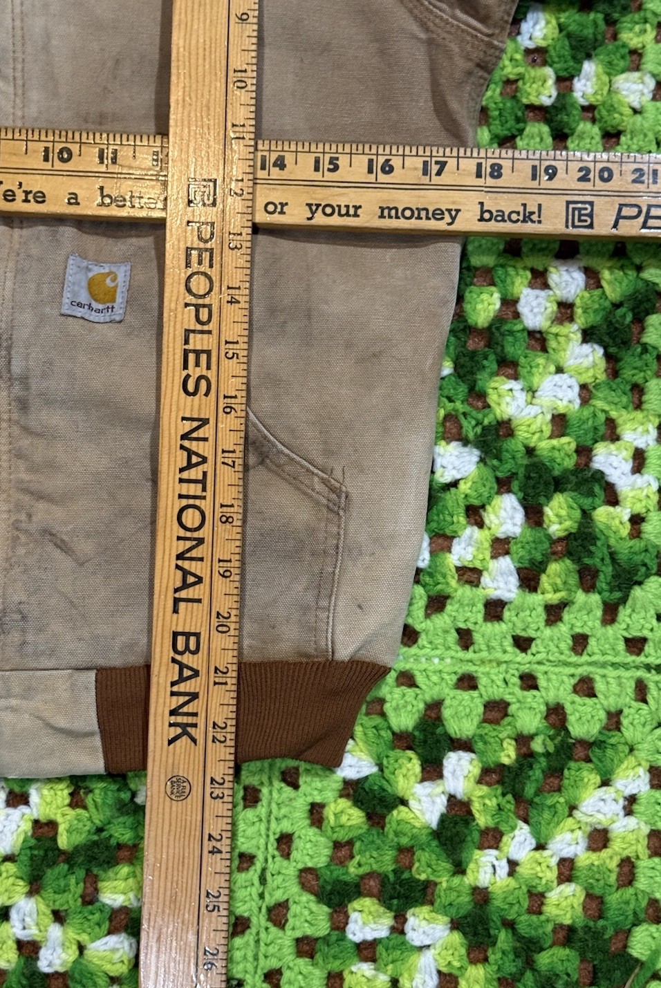 как выглядит Vtg Carhartt Youth Duck Jacket Tan Brown Hooded Zip Workwear LG 10/12 Worn As Is фото