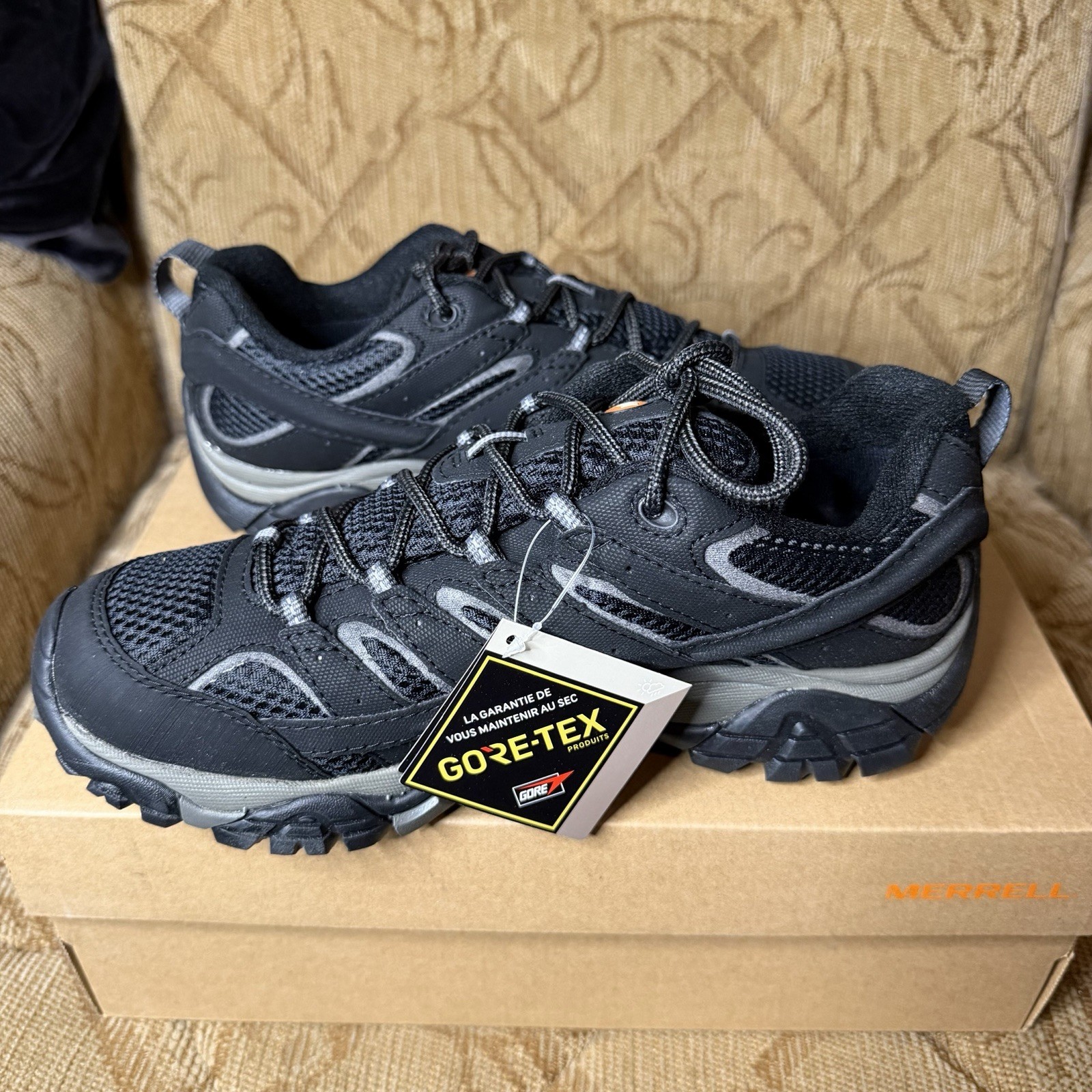 Merrell Moab 2 GTX Hiking Shoes Men s 8 J06037 Black Gore-Tex Vibram Trail New