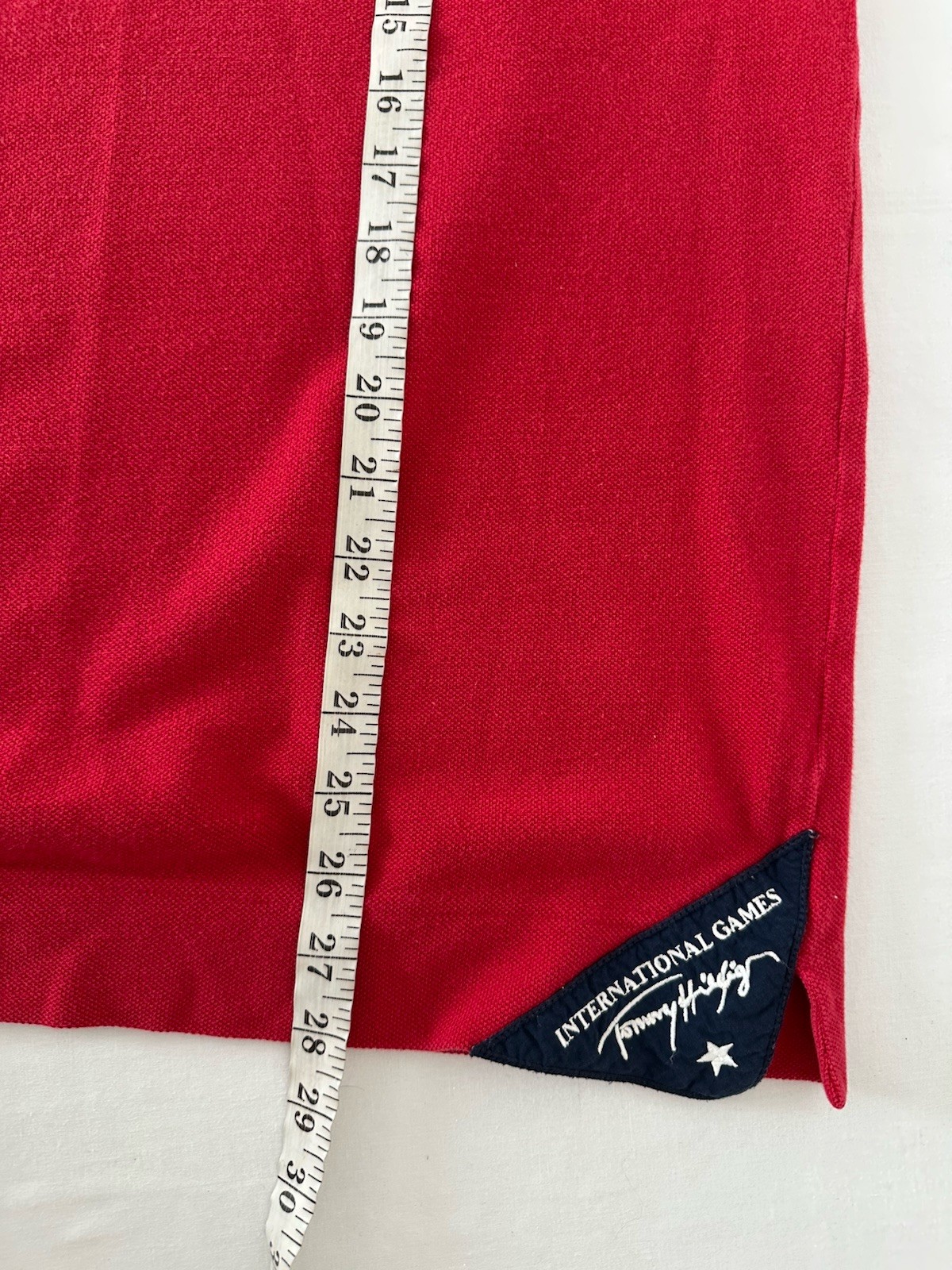 Vintage Y2K Tommy Hilfiger Mens Shirt XL Red Polo Cotton Double Sided Preppy