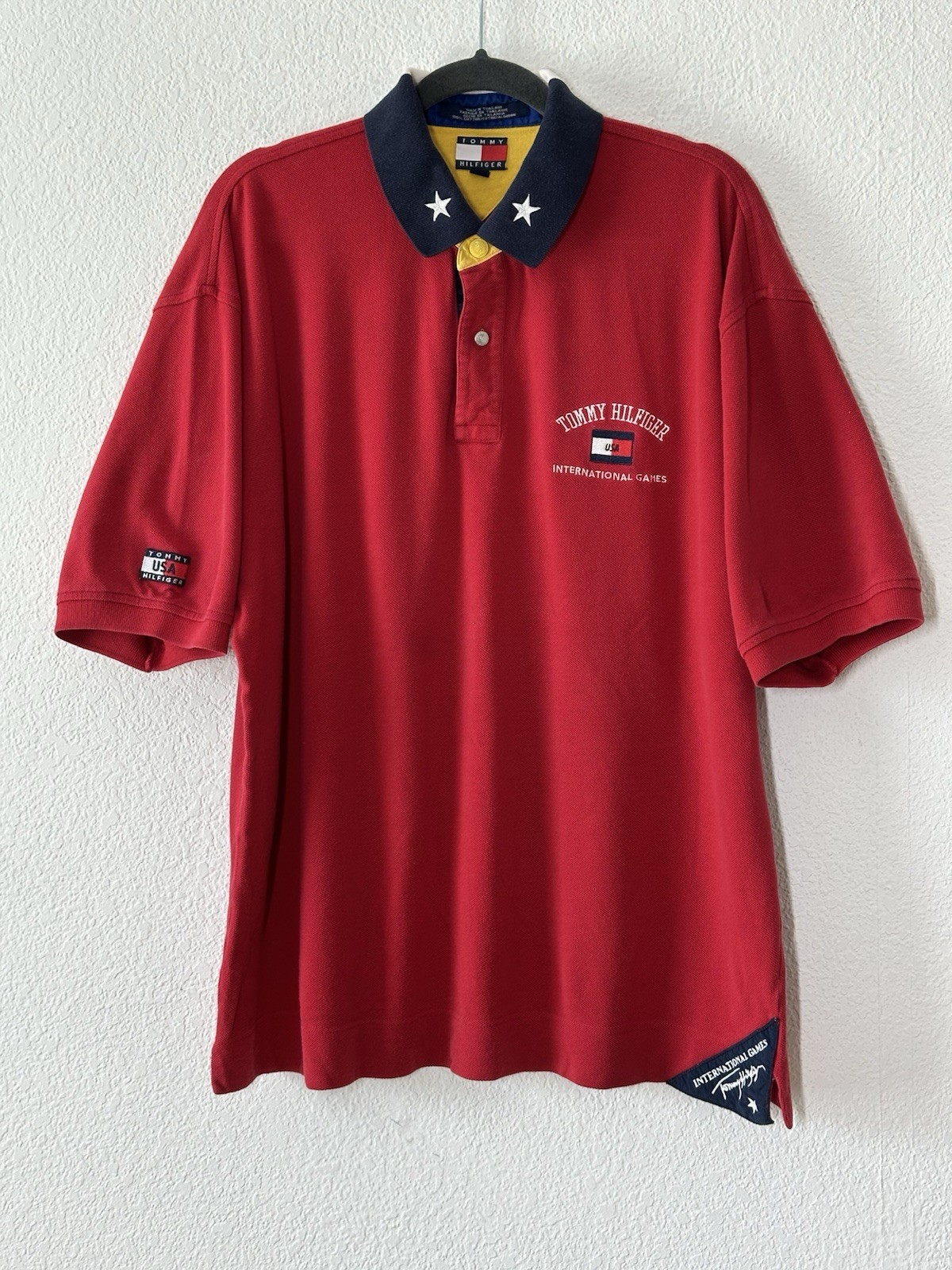 как выглядит Vintage Y2K Tommy Hilfiger Mens Shirt XL Red Polo Cotton Double Sided Preppy фото