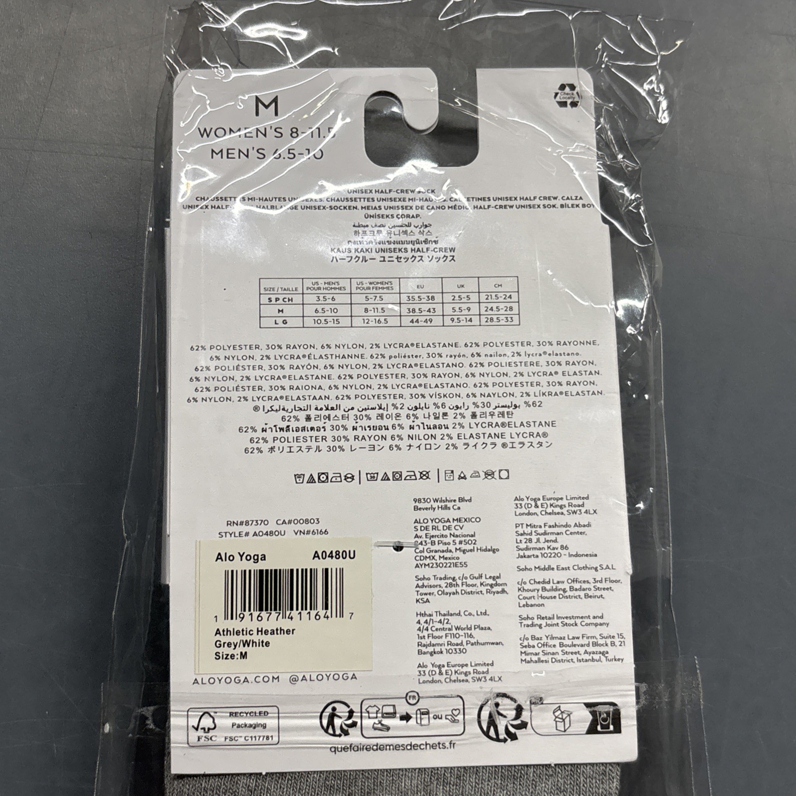 как выглядит ALO Yoga Unisex Half-Crew Throwback Sock Style A0480U in Heather Grey/White фото