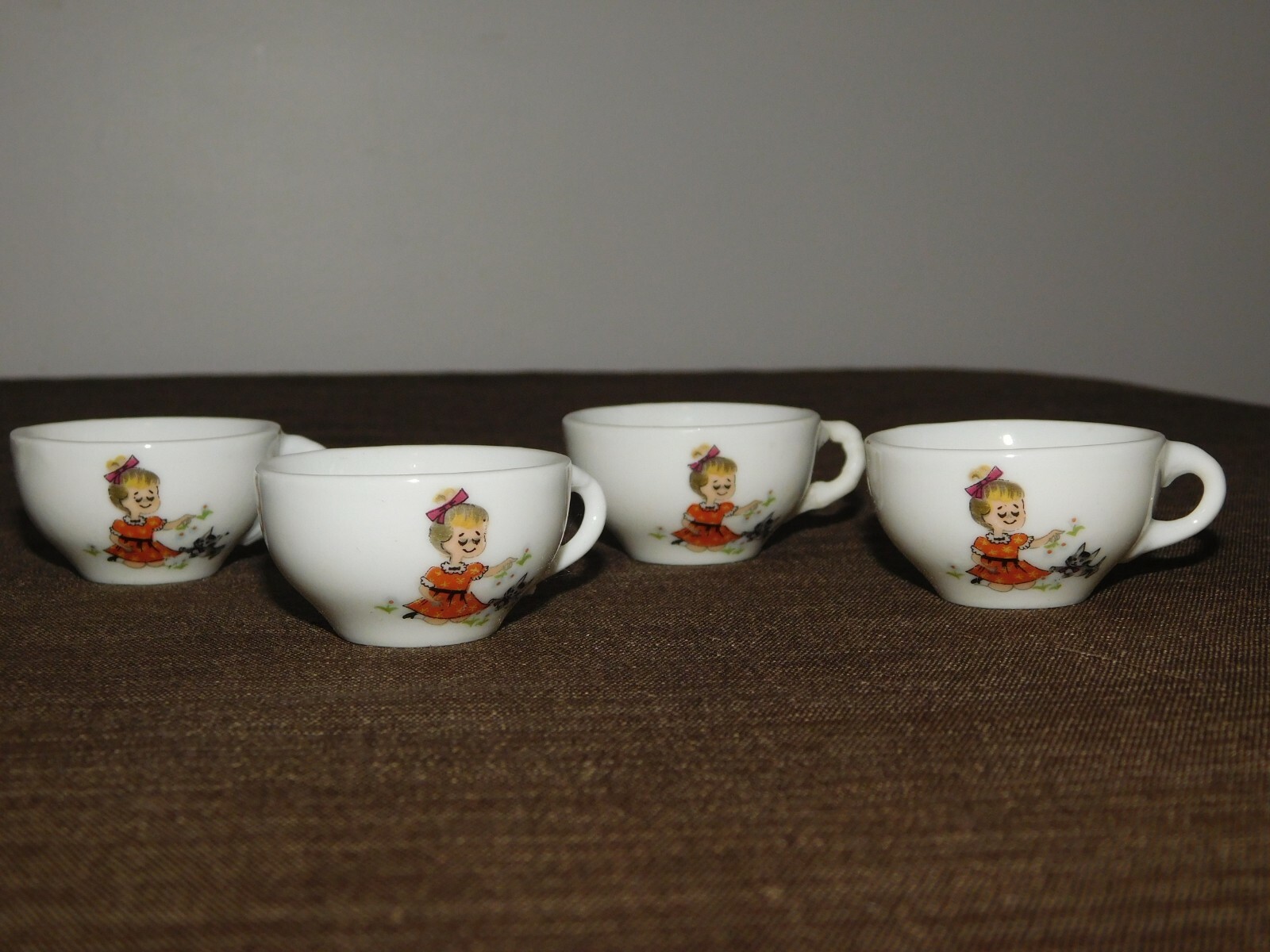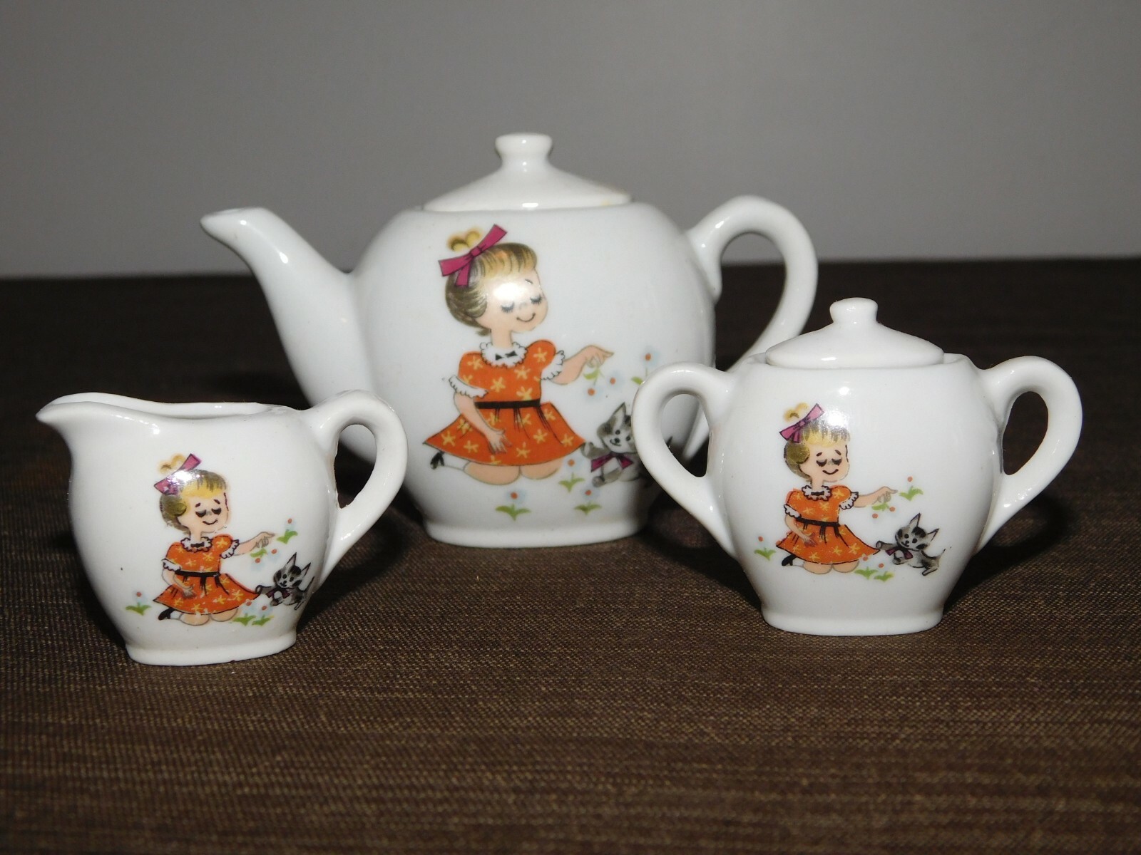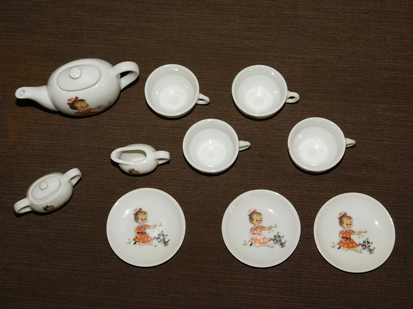 VINTAGE MINI GIRL KITTEN CAT CERAMIC TOY TEA SET IN BOX