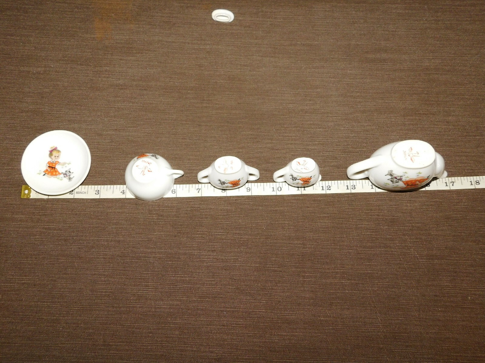 как выглядит VINTAGE MINI GIRL KITTEN CAT CERAMIC TOY TEA SET IN BOX фото