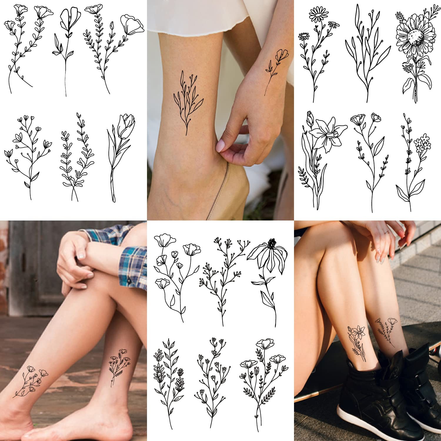 75 Styles Tiny Black Flower Branch Temporary Tattoos For Women, 16 Sheets Rea...