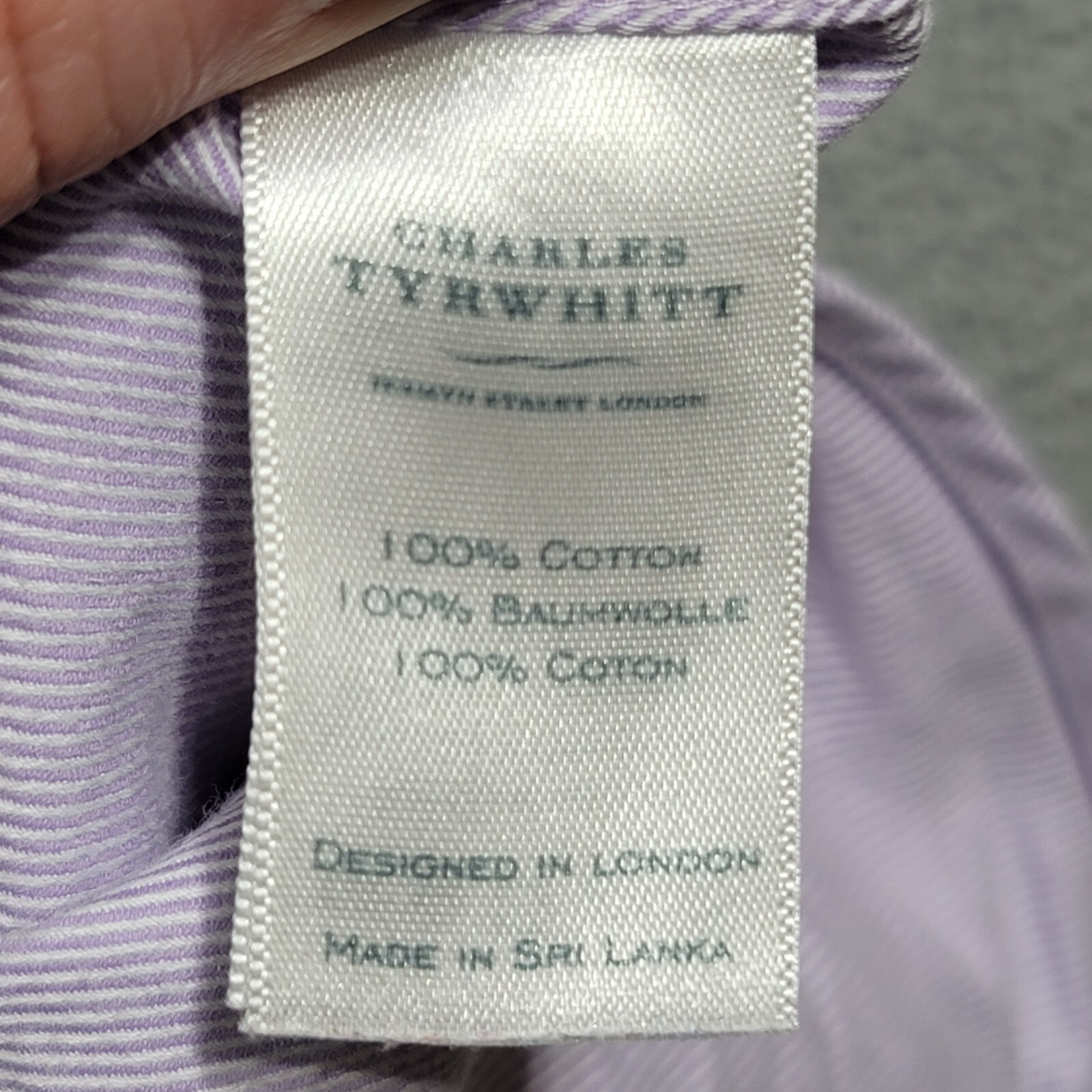 как выглядит Charles Tyrwhitt Shirt Mens 20 37 Purple Striped Classic Fit Button Up Dress фото