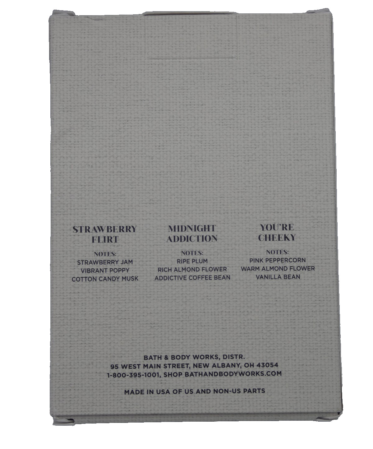 Scent: MIDNIGHT ADDITION, YOU'RE CHEEKY, STRAWBERRY FLIRT