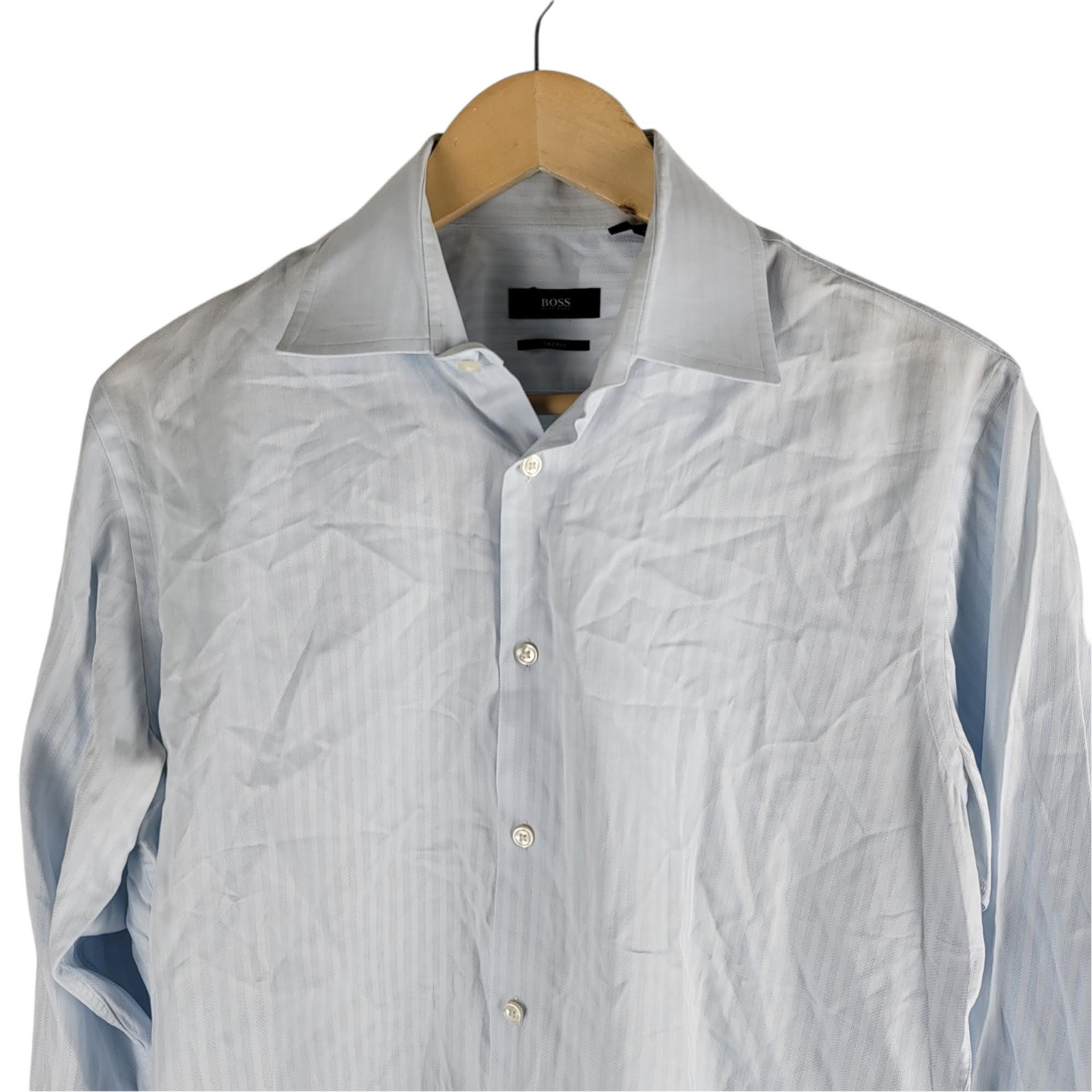 Hugo Boss mens long sleeve button up dress shirt striped light blue white sz 15.