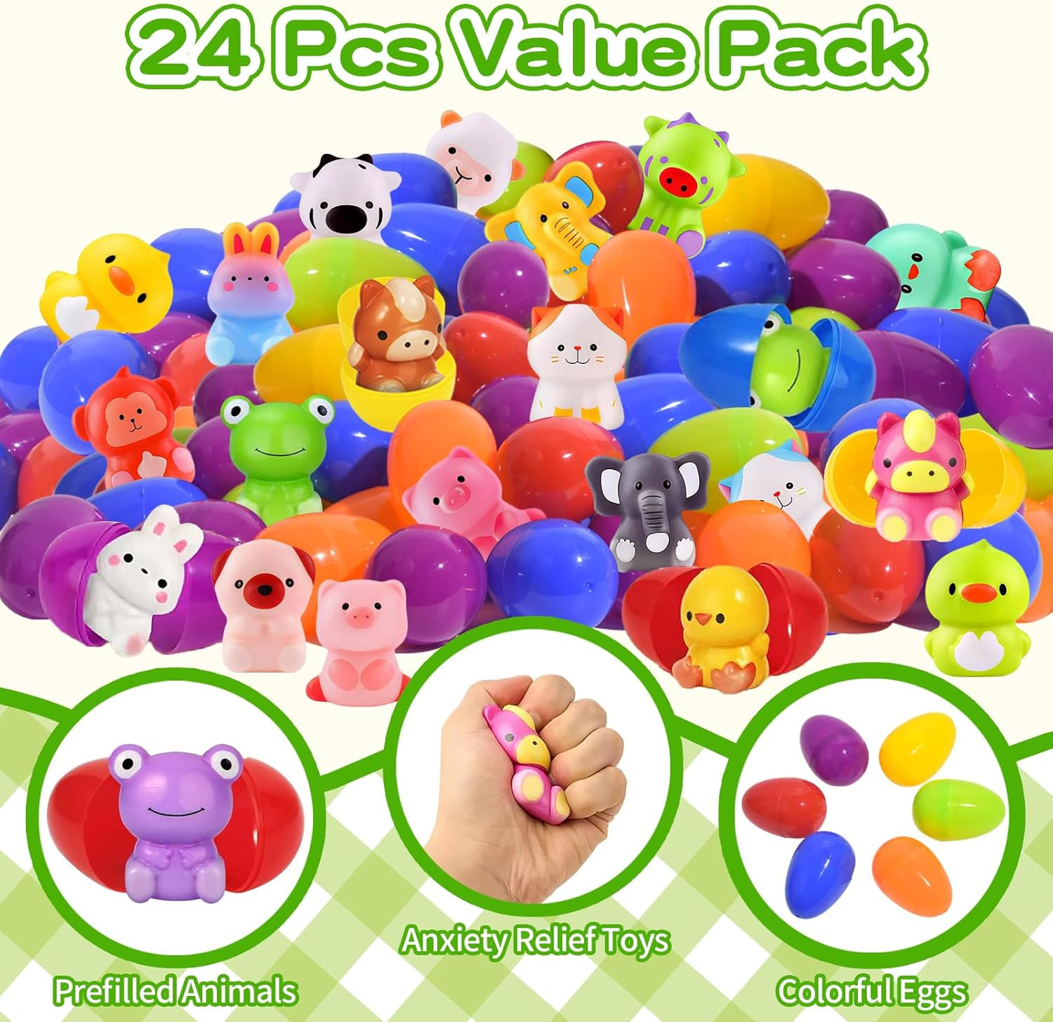 Prefilled Easter Eggs for Kids Toddlers - 24 Pack Plastic Easter Eggs Filled ...