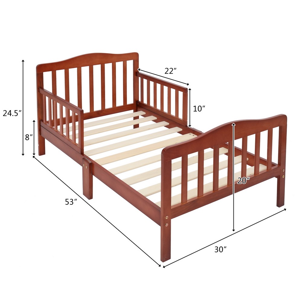 Wooden Toddler Bed Children Bedroom Furniture with Safety Guardrails Espresso