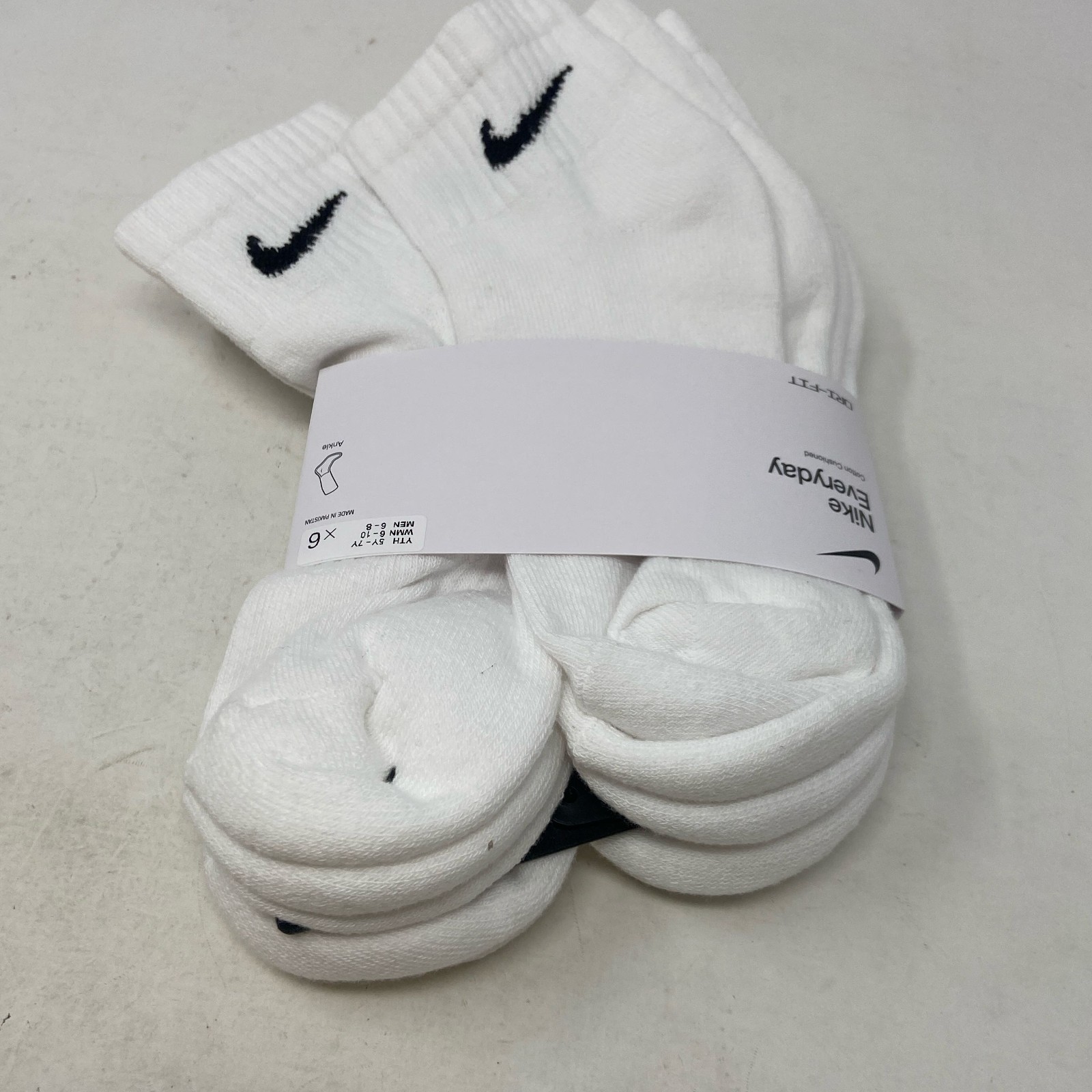 как выглядит NIKE Everyday Cushioned Ankle Socks 6-Pair White M W6-10/M6-8 фото