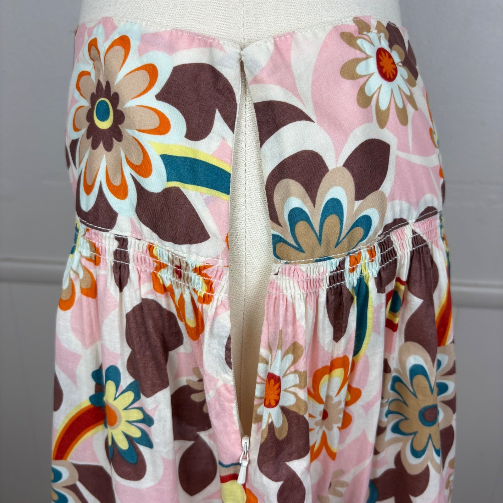 Old Navy Vintage Full Skirt Pink Brown Size 10 Low Waist Floral Y2K Boho Daisy