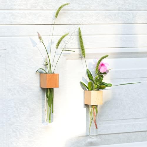 Wooden Wall Planter Glass Plant Propagation Stations Fridge Glass Tube Single