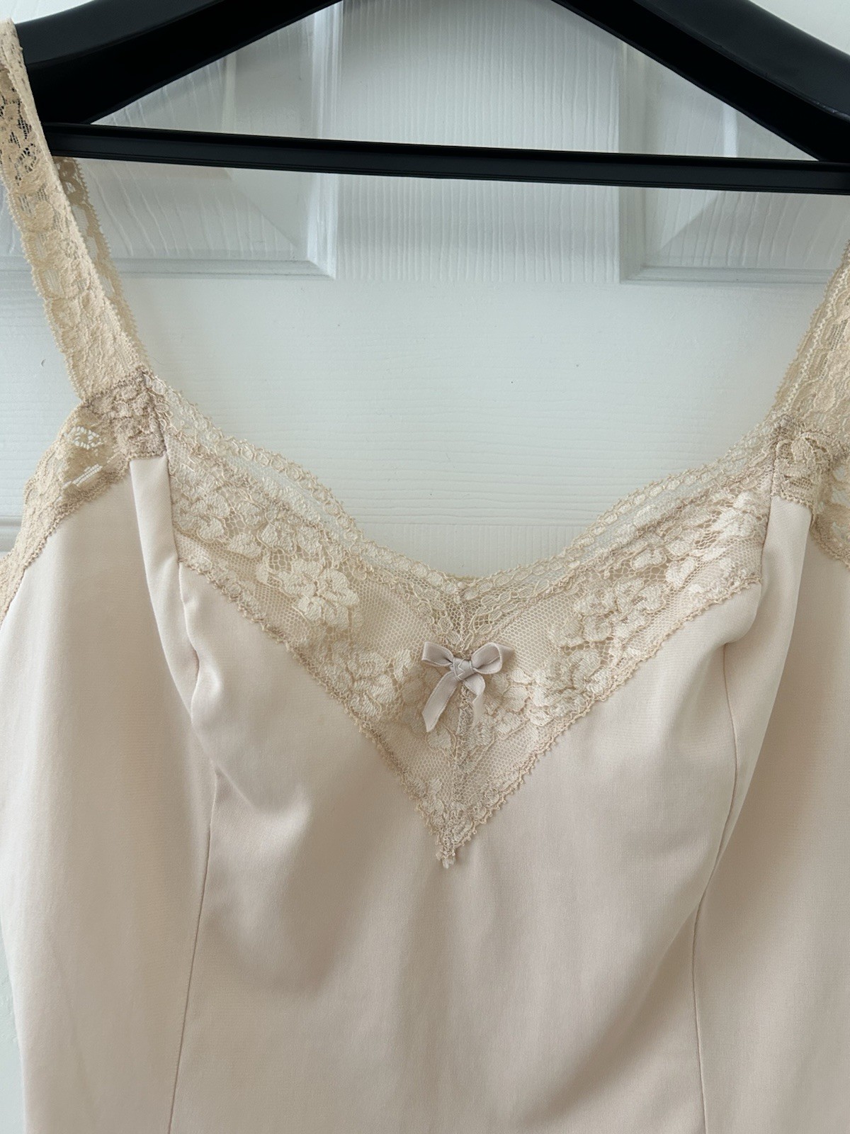 как выглядит Vintage Olga Camisole Style 925 Cami Lace Trim Straps Beige Nude Size Petite USA фото