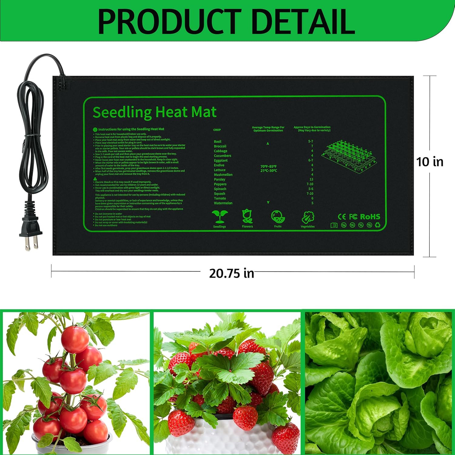 Seedling Heat Mat for Seed Starting,10 X 20.75 Waterproof Heating Pad for Indo