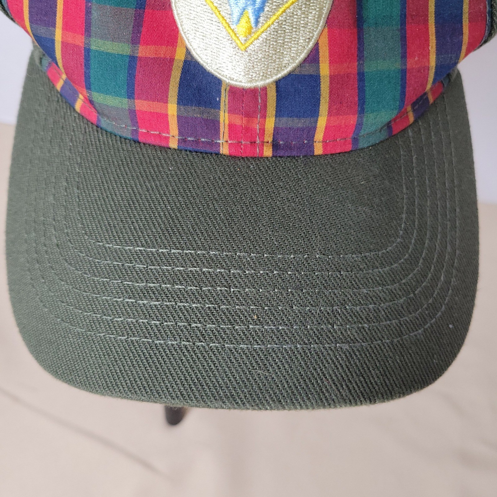Webelos Cub Scout Uniform Cap Hat Plaid Green M/L Uniflex Polyester Spandex