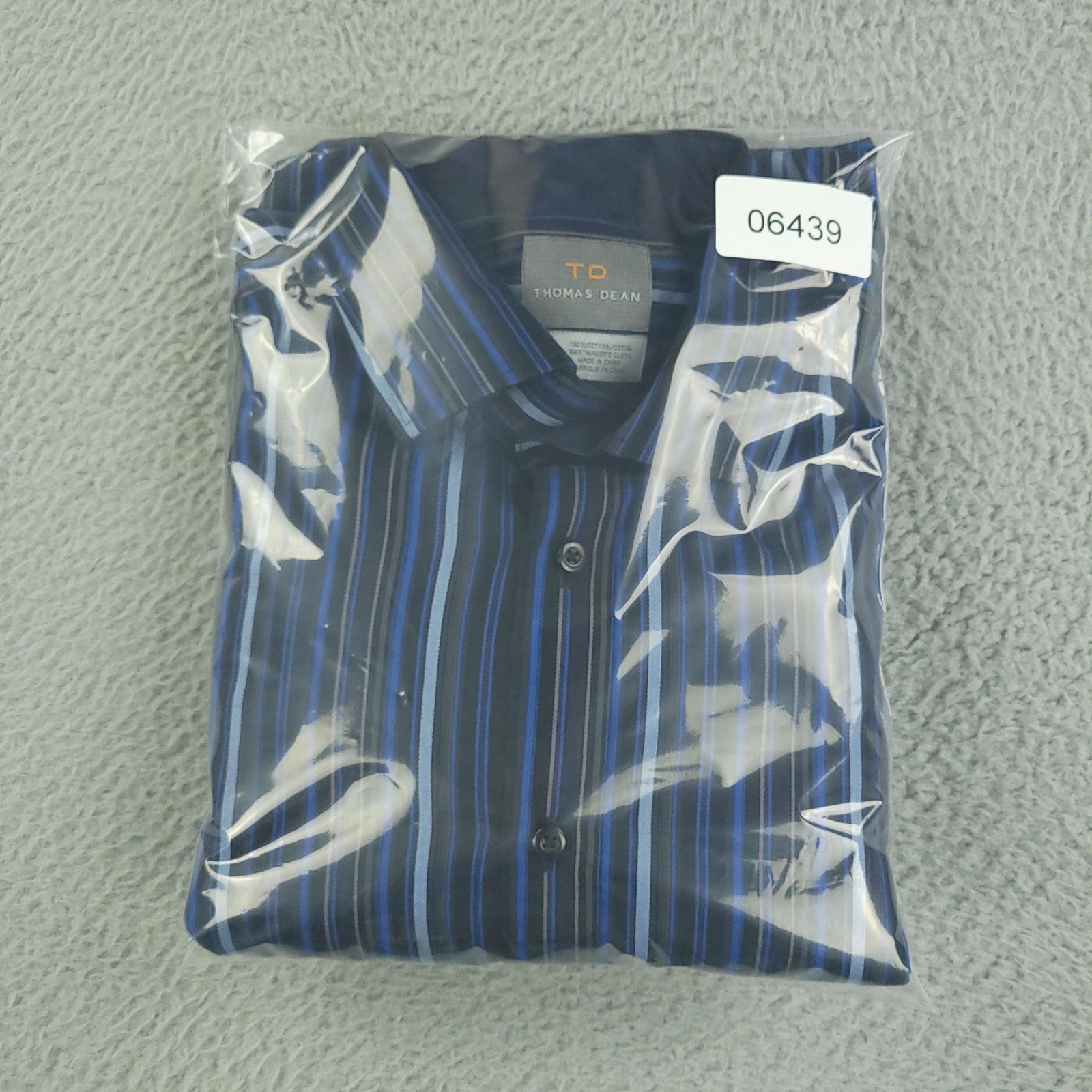 Thomas Dean Shirt Mens Large Multicolor Stripe Blue Cuff Dress Long Sleeve