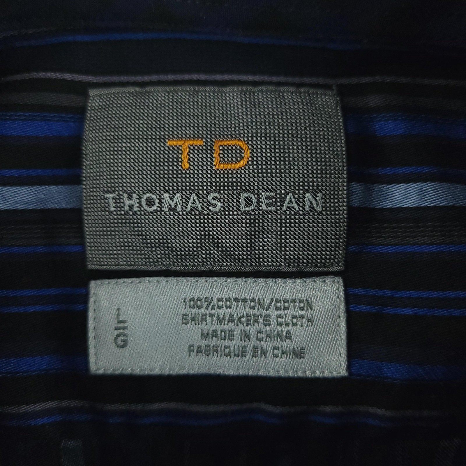как выглядит Thomas Dean Shirt Mens Large Multicolor Stripe Blue Cuff Dress Long Sleeve фото