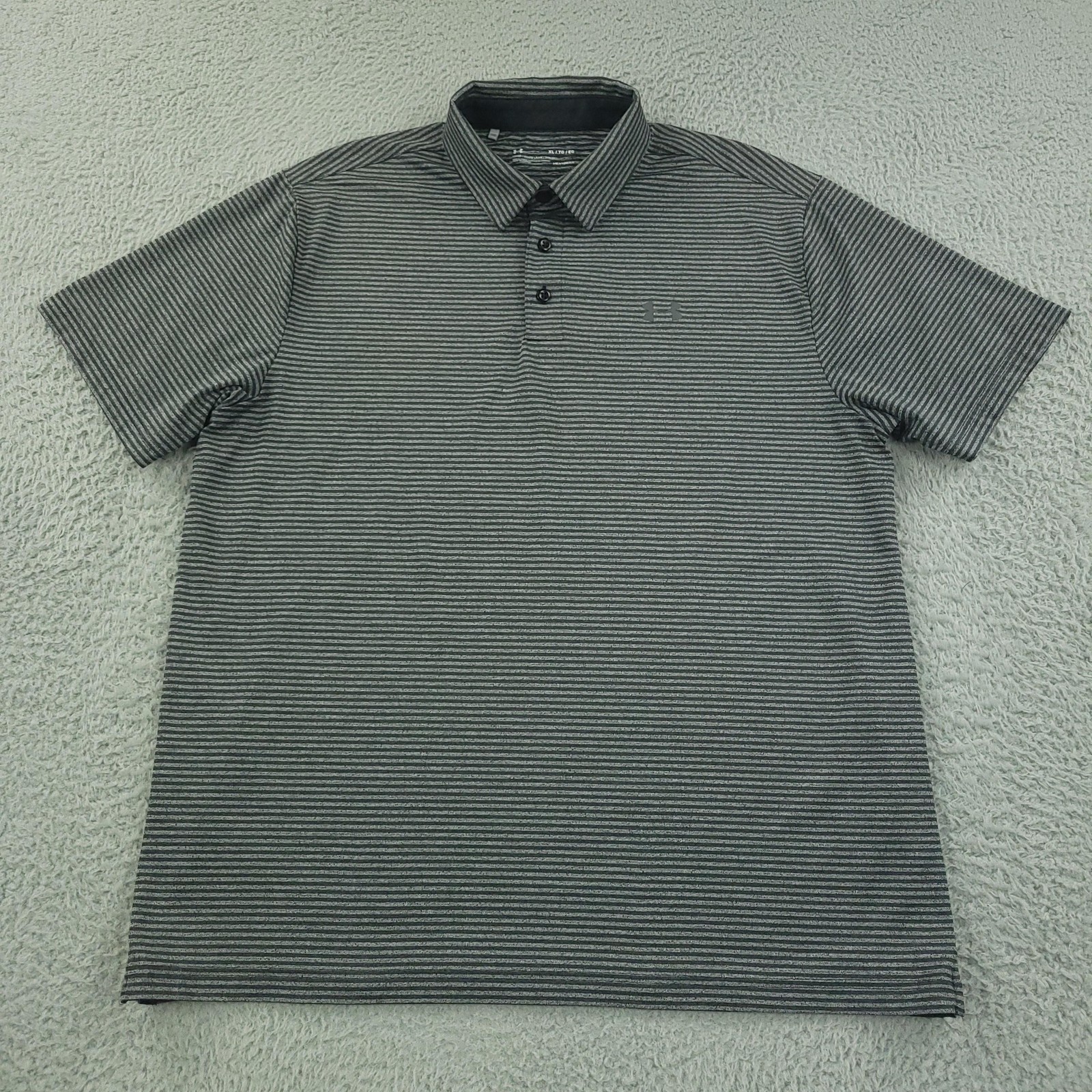 Under Armour Polo Shirt Mens XL Gray Stripe HeatGear Golf Performance Loose