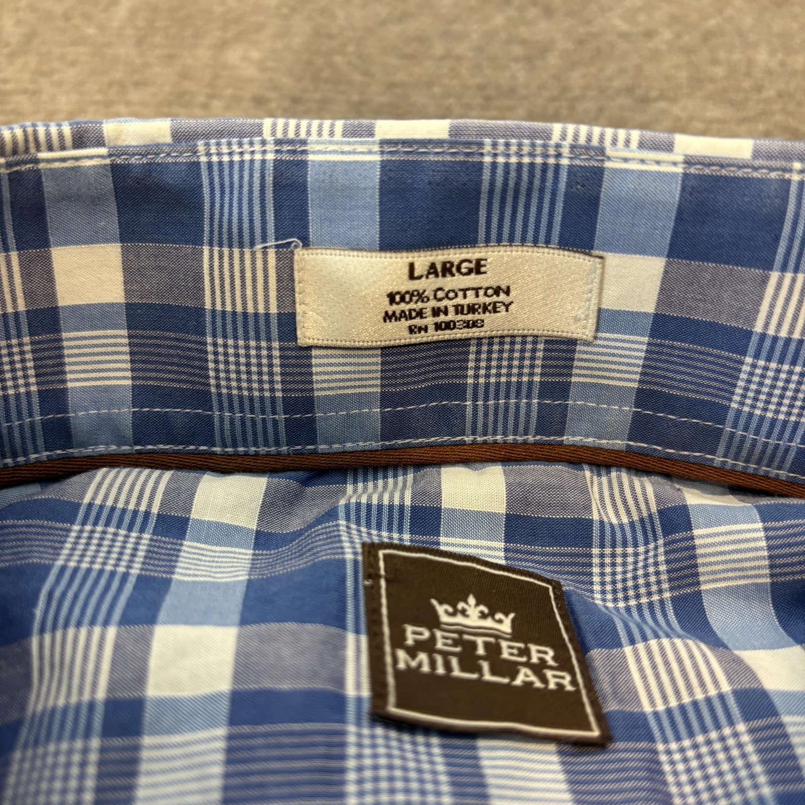 как выглядит Peter Millar Dress Shirt Mens Large Blue Plaid Cotton Long Sleeve Button Down фото