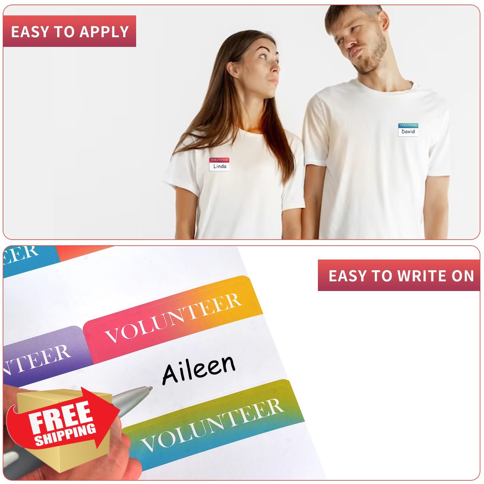 200 Volunteer Name Tags, 2x3 Self Adhesive Rainbow